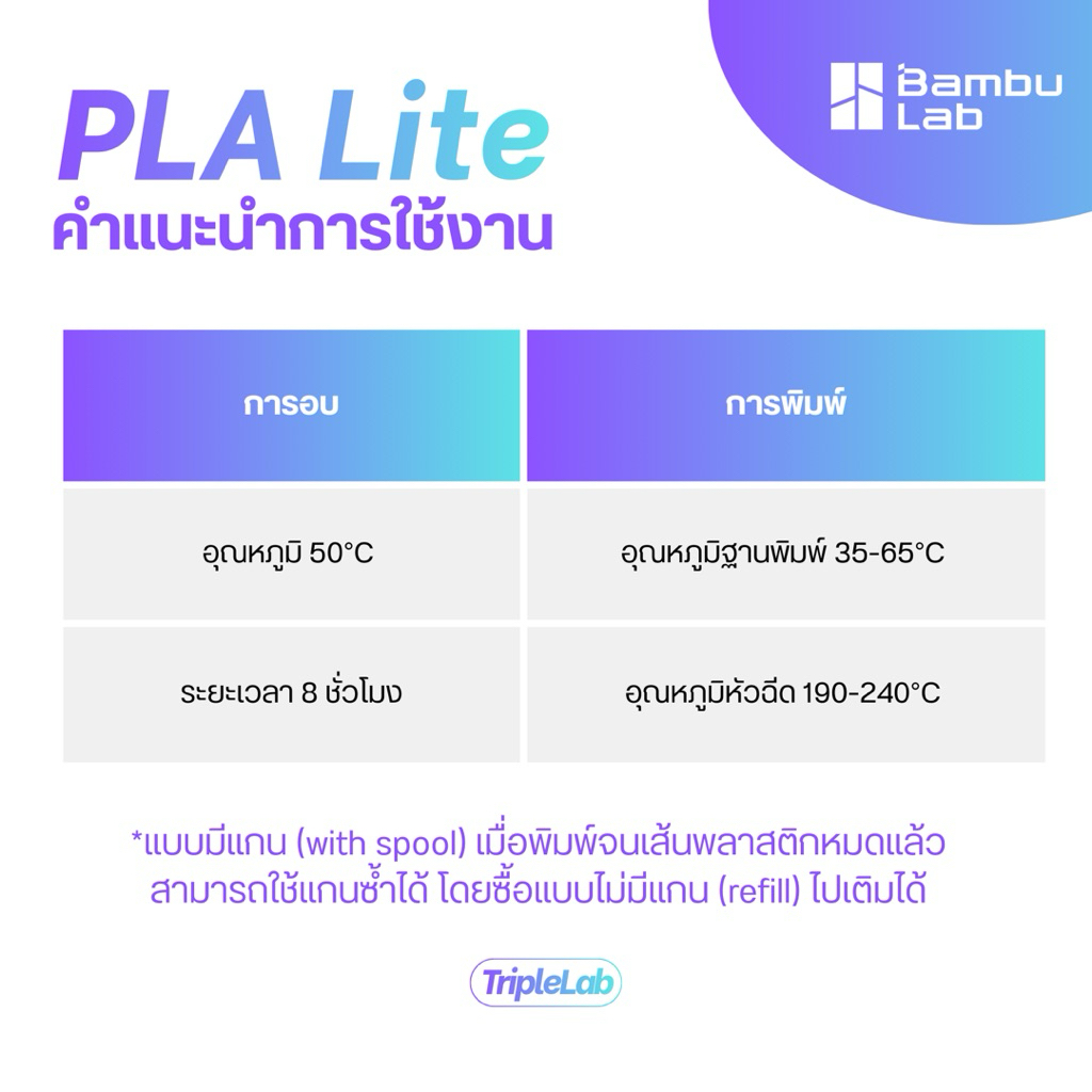 (พร้อมส่ง) Bambu Lab PLA Lite เส้นพลาสติก Filament หนัก 1kg แบบมีแกน (with spool) และ refill มี RFID