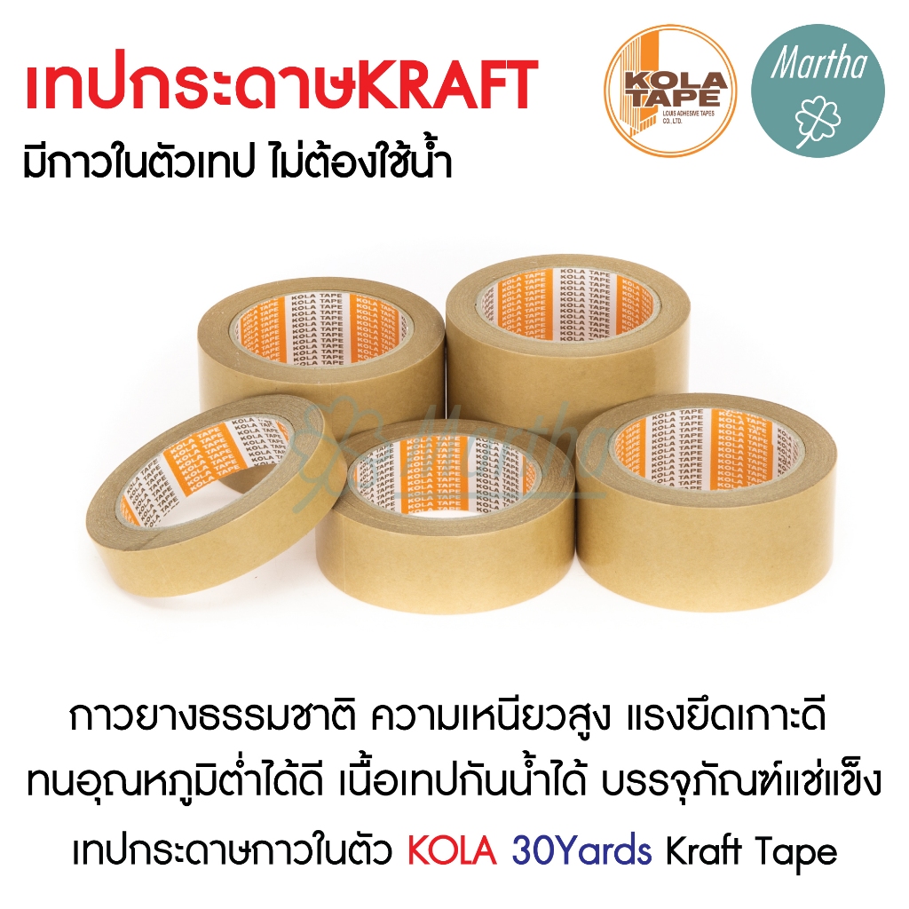 (1ม้วน) เทปกระดาษกาวในตัว KOLA 24 36 48 60 72mm x30Y เทปกระดาษคราฟท์ เทปกระดาษสีน้ำตาล เทปปิดกรอบรูป