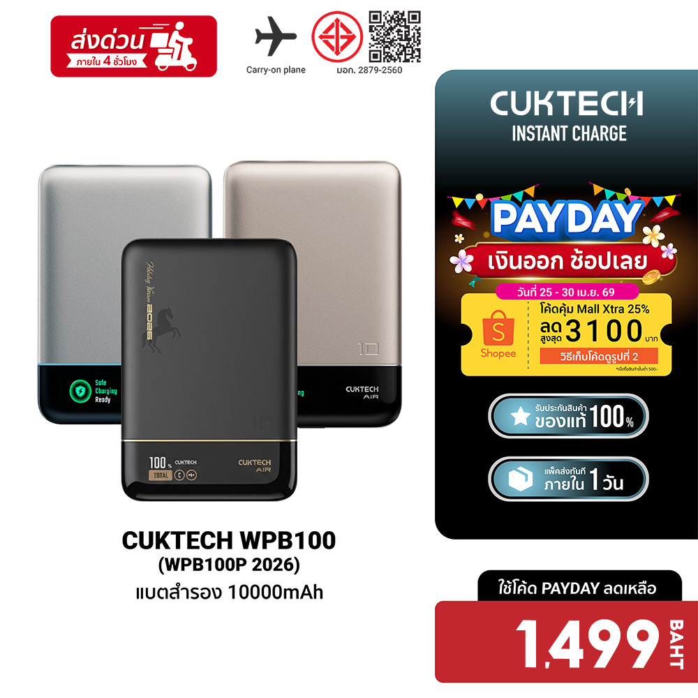 [ลดเหลือ 1499] CUKTECH WPB100P Powerbank แบตสำรอง CCC ชาร์จไร้สาย 10000mAh ชาร์จผ่านสายกำลังไฟสูงสุด 55W -1Y
