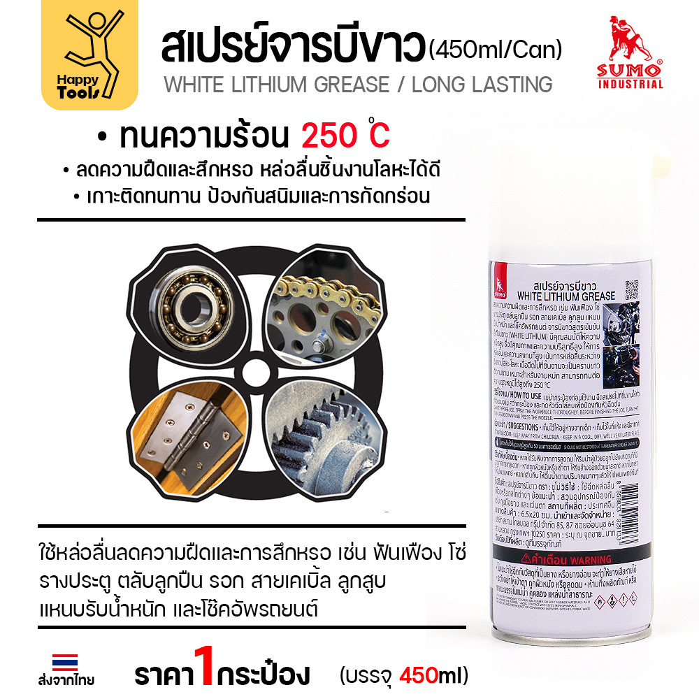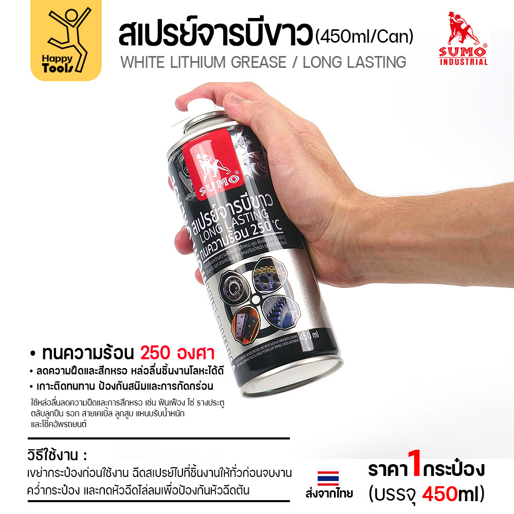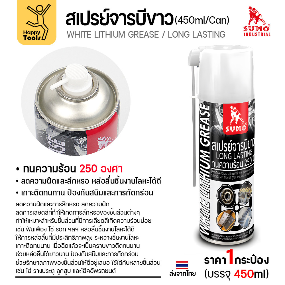 สเปรย์จารบีขาว SUMO เกรดพรีเมียม หล่อลื่นลื่นปรื๊ด ทนร้อนสูง ฉีดล้อประตู โซ่เครื่องจักร รอก ของแท้ราคาถูกที่สุด ห้ามพลาด