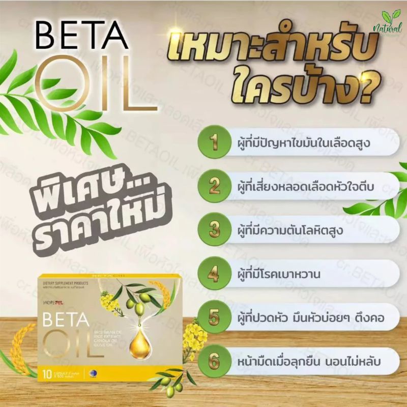 ซื้อ 1 แถม 1[ พร้อมส่ง จัดส่งจันทร์ - เสาร์ ] Beta Oil ( เบต้า ออย ) ของแท้ สารสกัดจากธรรมชาติ ไขมัน คอเลสเตอรอล ความดัน