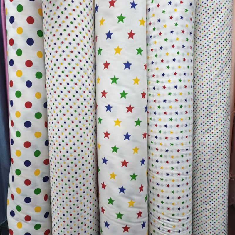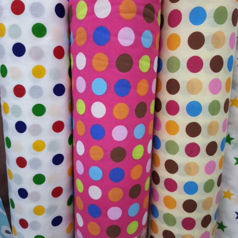ผ้าลายการ์ตูน ผ้าคอตตอลผสม จุด dot ดาว ทีซีการ์ตูน 016 หน้ากว้าง 110-115cm
