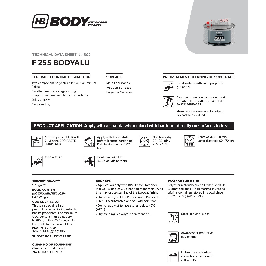 สีโป๊วงานอลูมิเนียม HB BODY F255 BODYALU ขนาด 1 กิโลกรัม