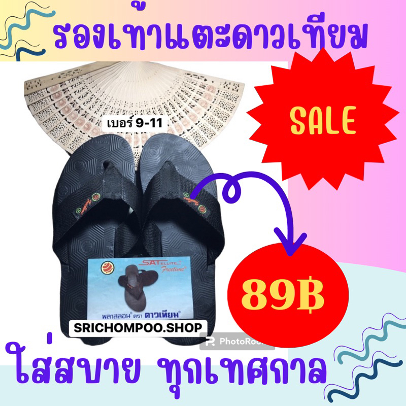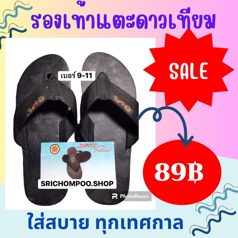 รองเท้าแตะดาวเทียมสายผ้าสีดำของแท้100%รองเท้าแตะคีบ ทนทาน ใส่สบาย ราคาถูก {มีไซส์9-11}