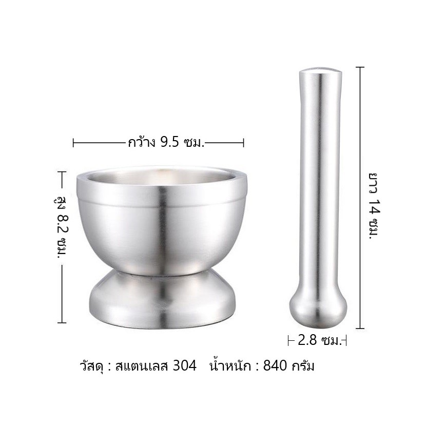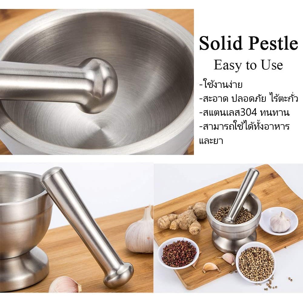 HOMEBERG ครก ครกสแตนเลส ครกบดยา ครกเล็ก ครกและสาก ครกพร้อมสาก สาก สแตนเลส304 แข็งแรง ทนทาน ขนาดพอเหมาะ