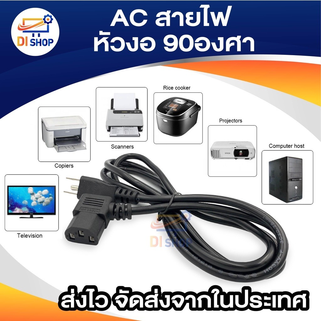 AC สาย POWER CABLE Male Female หัวฉาก หัวงอ 90องศา หนา0.75mm ยาว1.8m