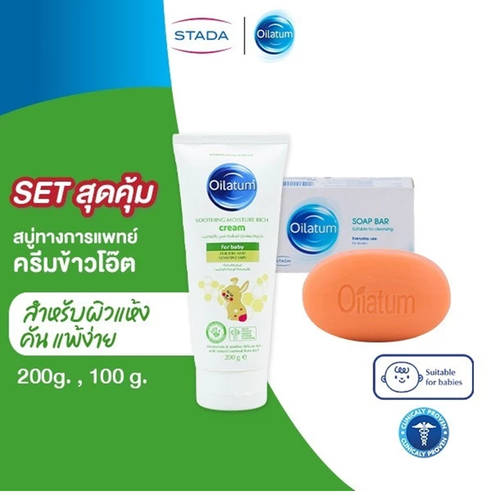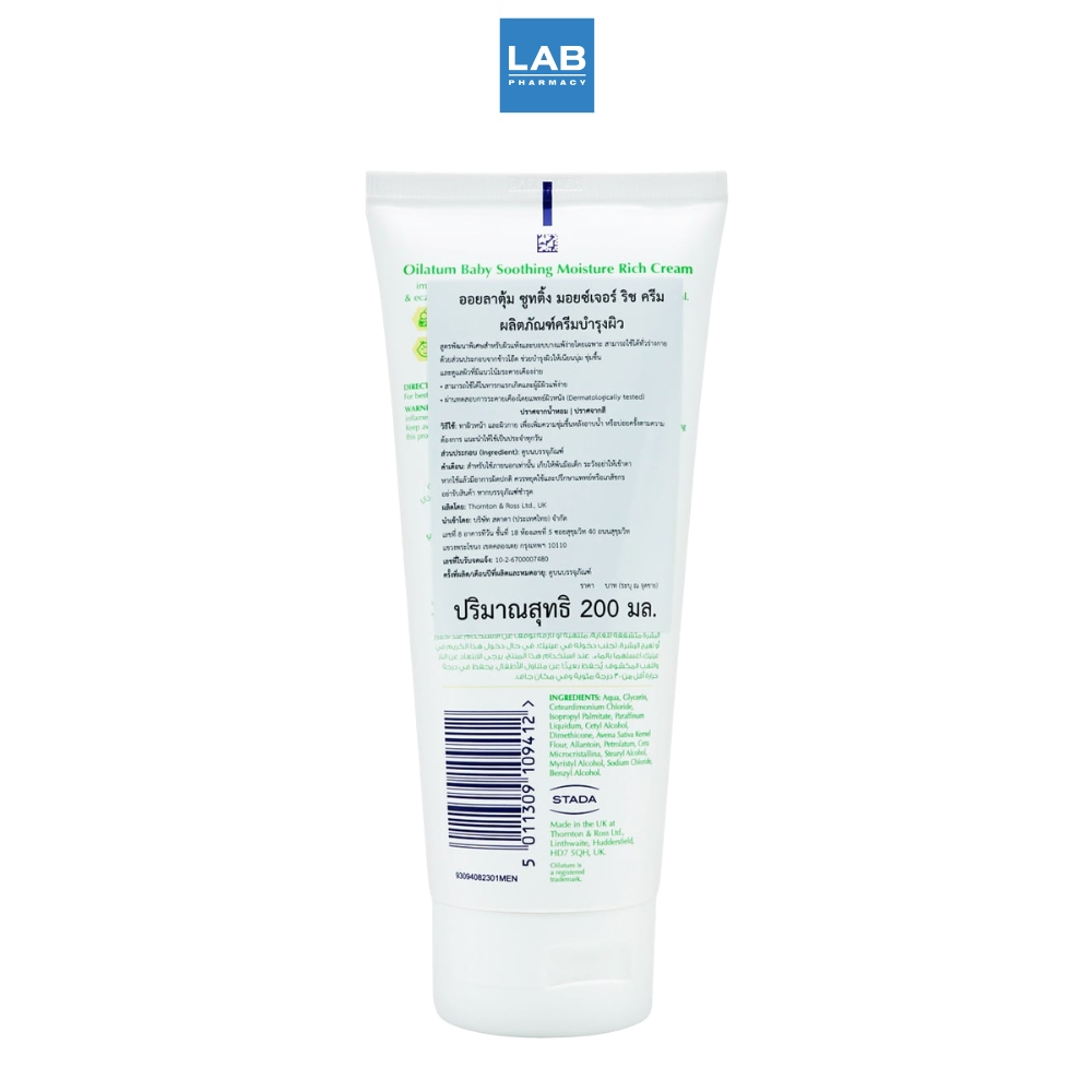 [ แถม ฟรี ! สบู่ ] Oilatum Soothing Moisture Rich Cream 200g. ออยลาตุ้ม ซูทติ้ง มอยซ์เจอร์ ริช ครีม 200 กรัม