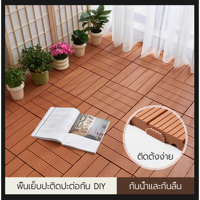 แผ่นปูพื้นสวน กระเบื้องปูพื้นลายไม้พลาสติก พื้นพลาสติก ติดตั้งง่าย สำหรับระเบียง ลานบ้าน เฉลียง และสวน