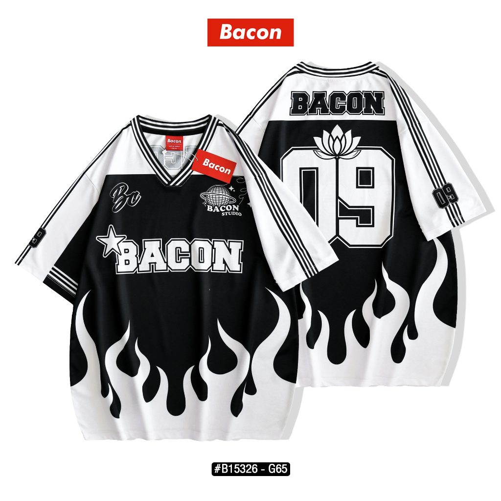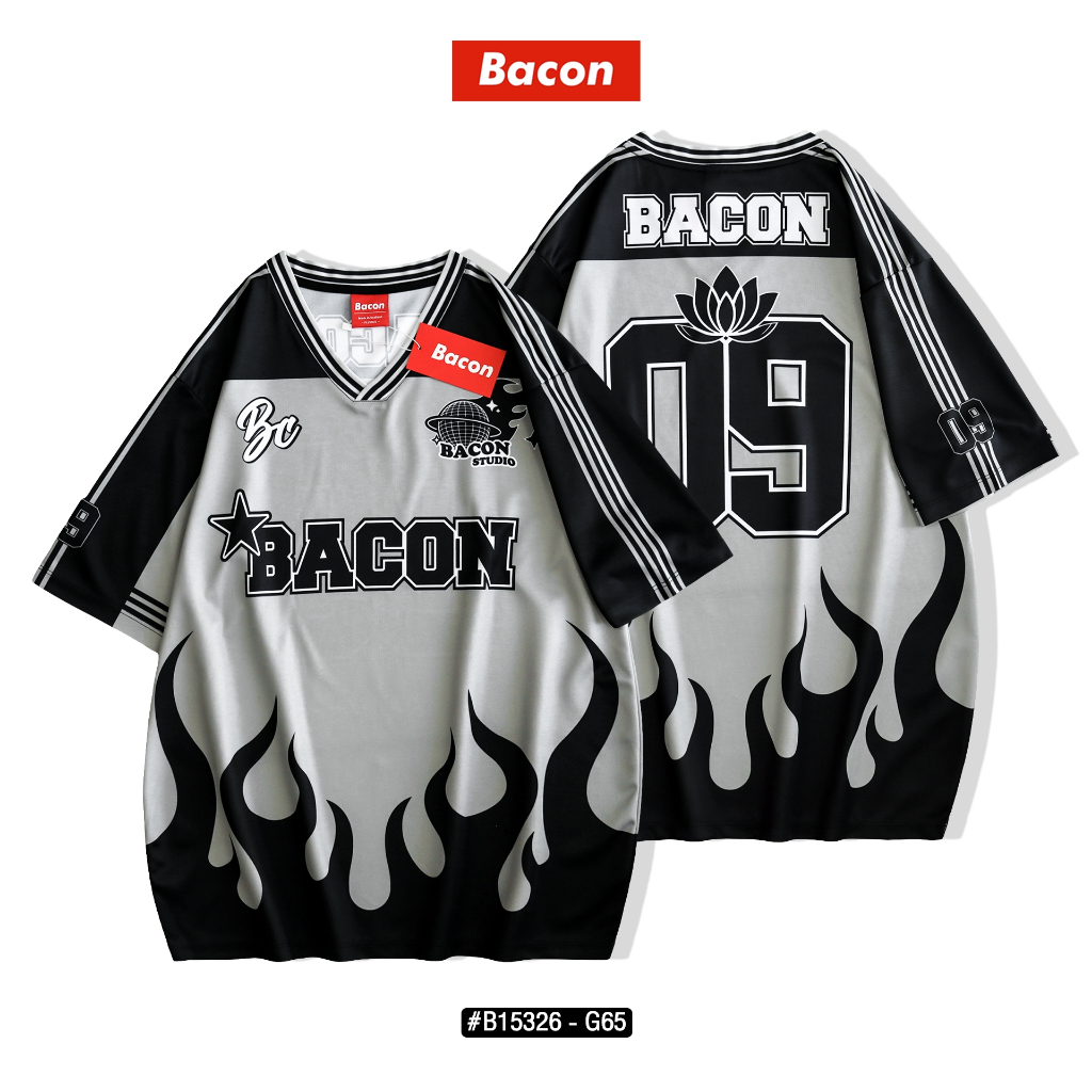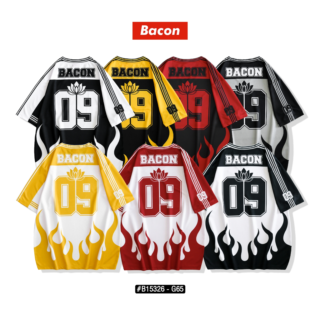 ฺBacon 09 เสื้อ Jersey Oversize ลายไฟ พิมพ์ลายทั้งตัว 7 สี ผ้าดาวกระจาย ใส่สบาย