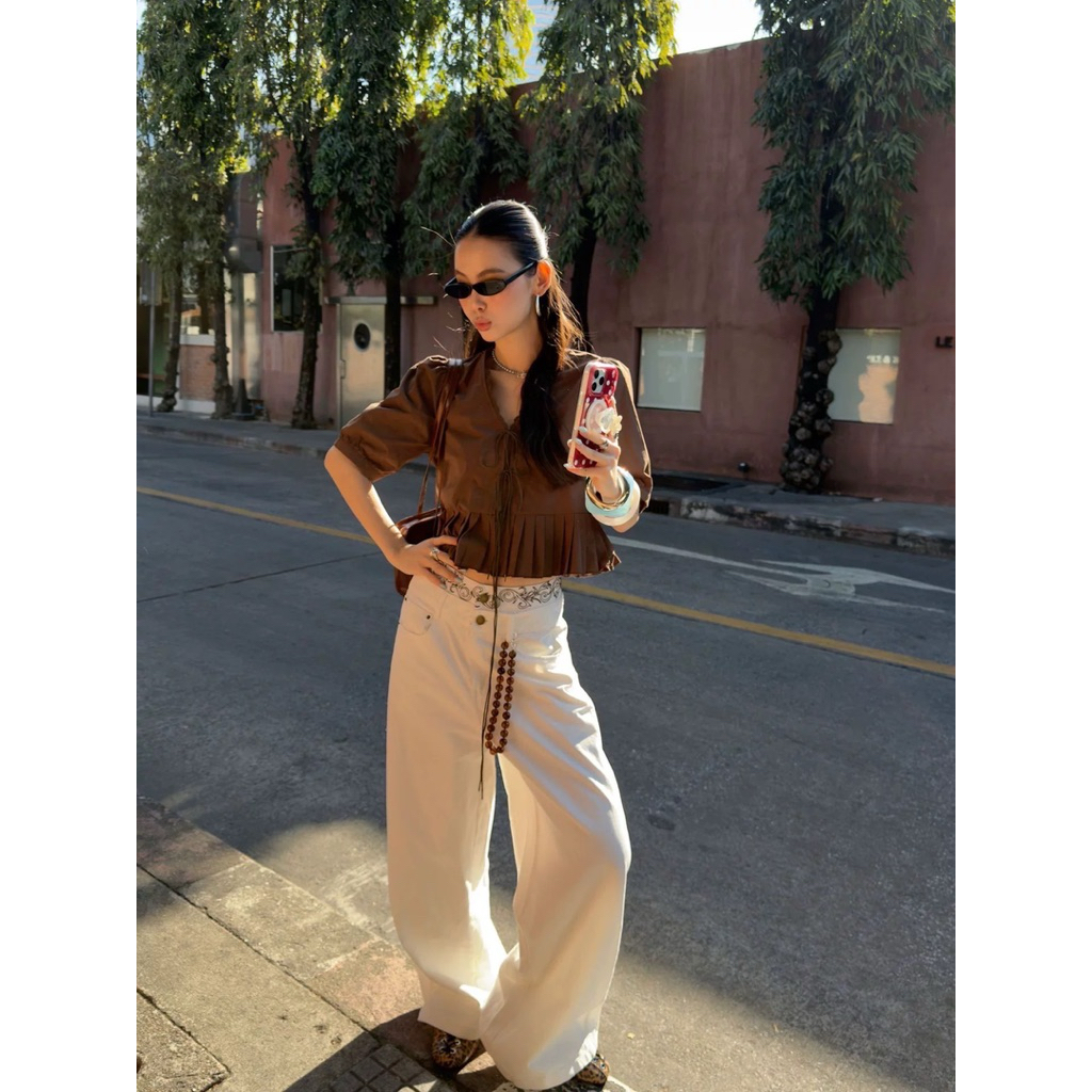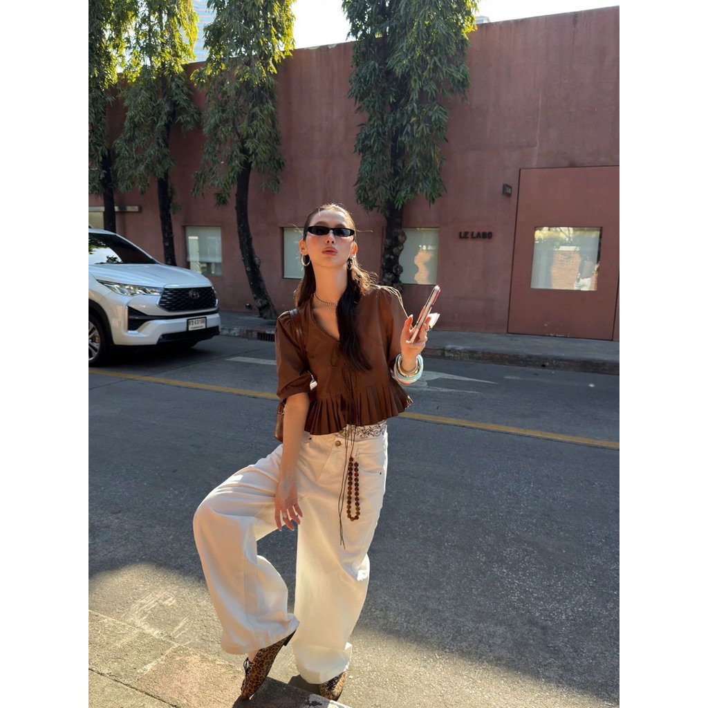 ส่งด่วน 🐳 #26C020 MMFISH 𝗦𝗘𝗥𝗔 𝗥𝗨𝗙𝗙𝗟𝗘 𝗧𝗢𝗣 เสื้อแขนพองทรงตุ๊กตา ละมุนดีไซน์จับจีบระบายหน้า