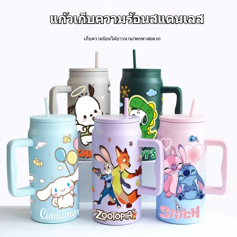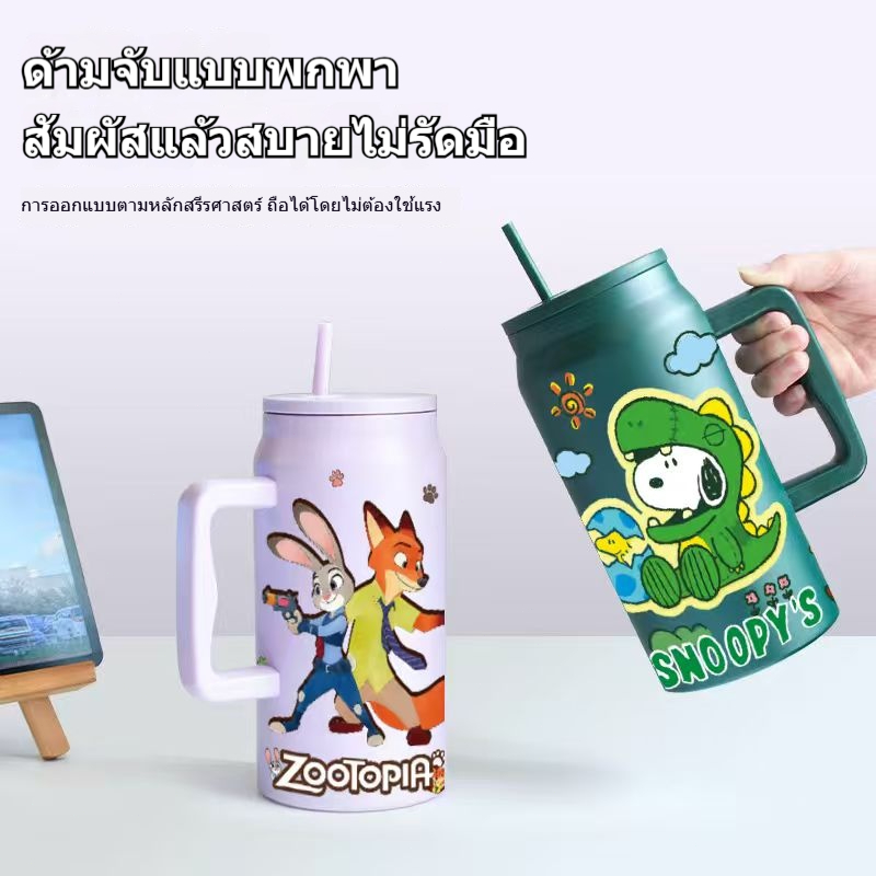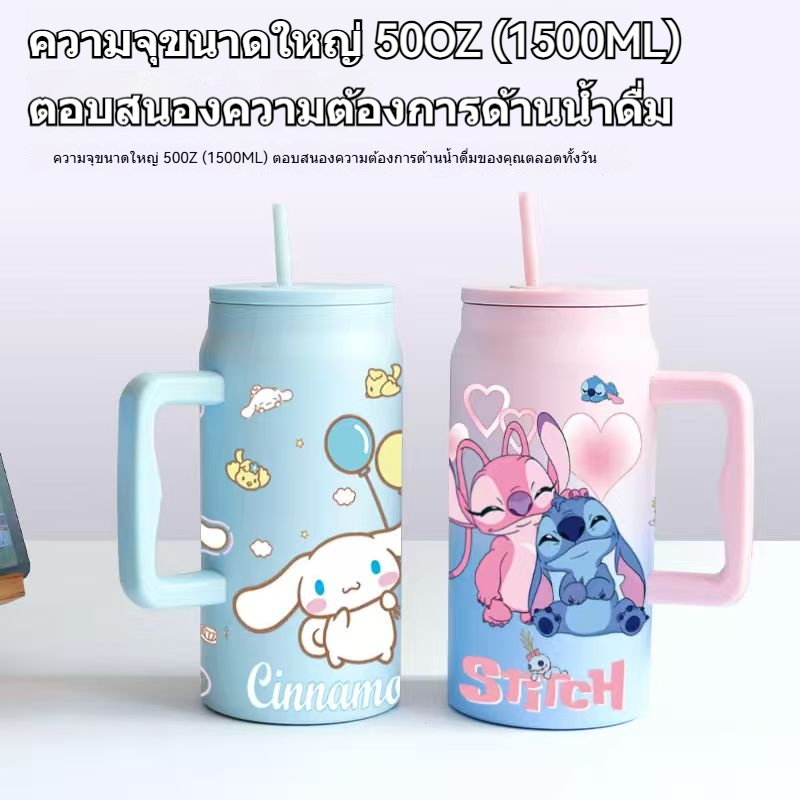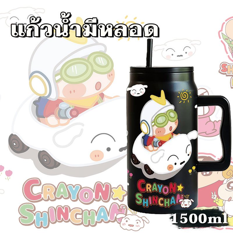 ชินจัง ShinChan แก้วเก็บอุณหภูมิ 1500ml สแตนเลส304 สูญญากาศ เก็บเย็นร้อนได้นาน พร้อมฝาฟาง+ที่จับ+หลอด ป้องกันรั่วซึม