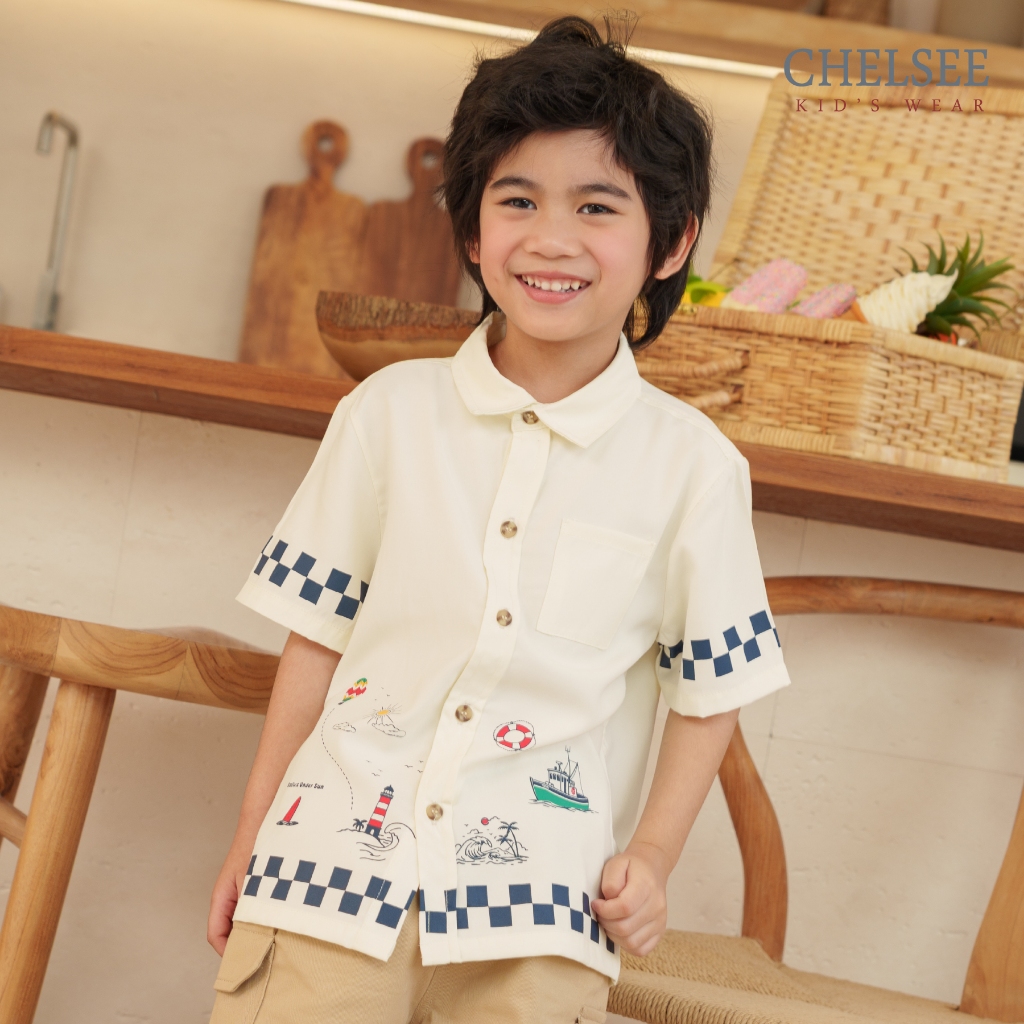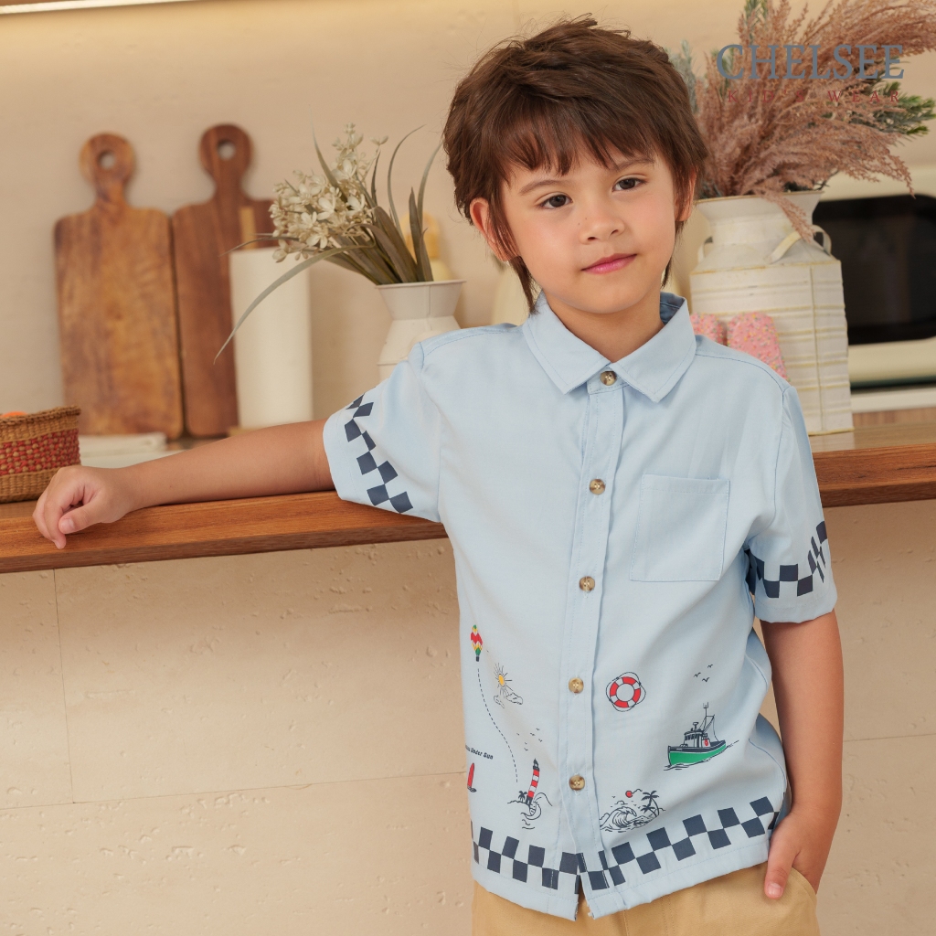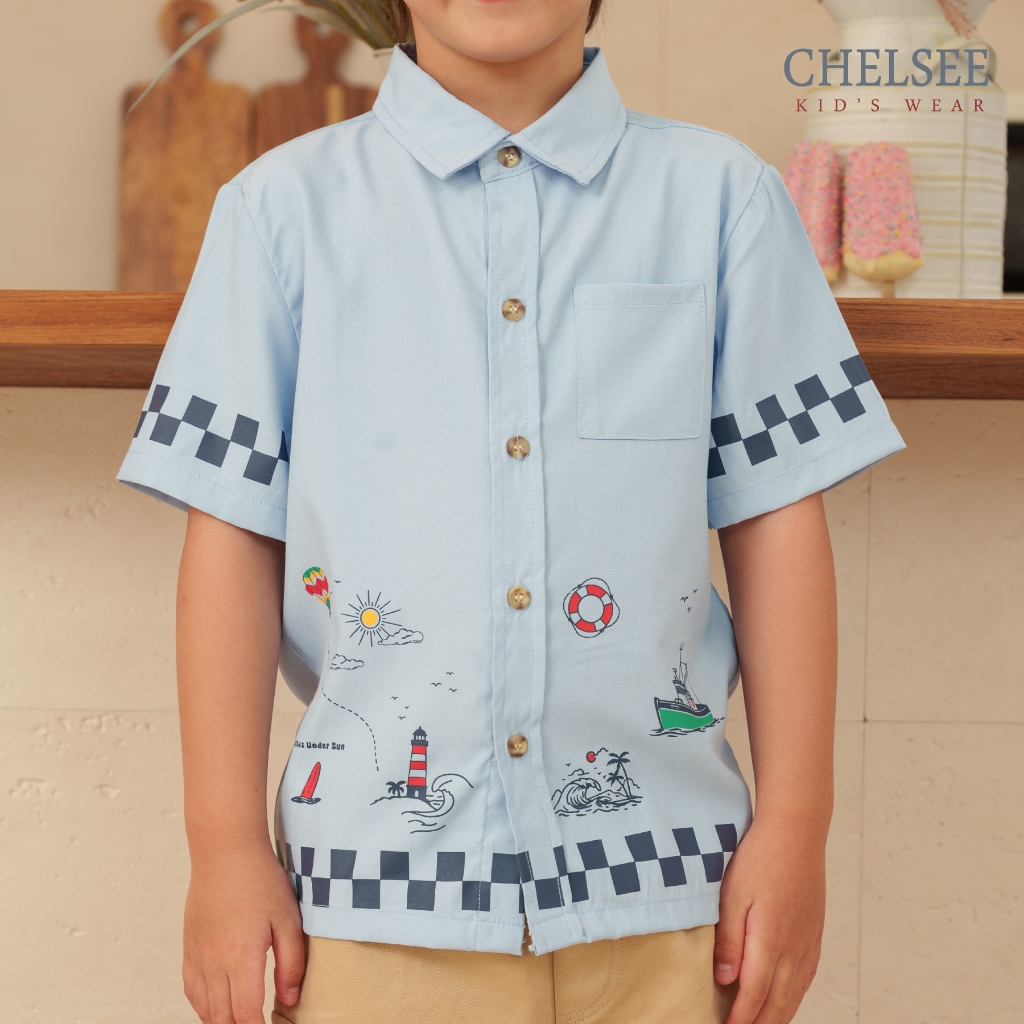 Chelsee เสื้อเชิ้ต แขนสั้น เรียบๆ ลายทะเล ซัมเมอร์ 100%Cotton เด็กผู้ชาย อายุ 1.5-10 ปี เสื้อผ้าเด็กโต รุ่น 128239