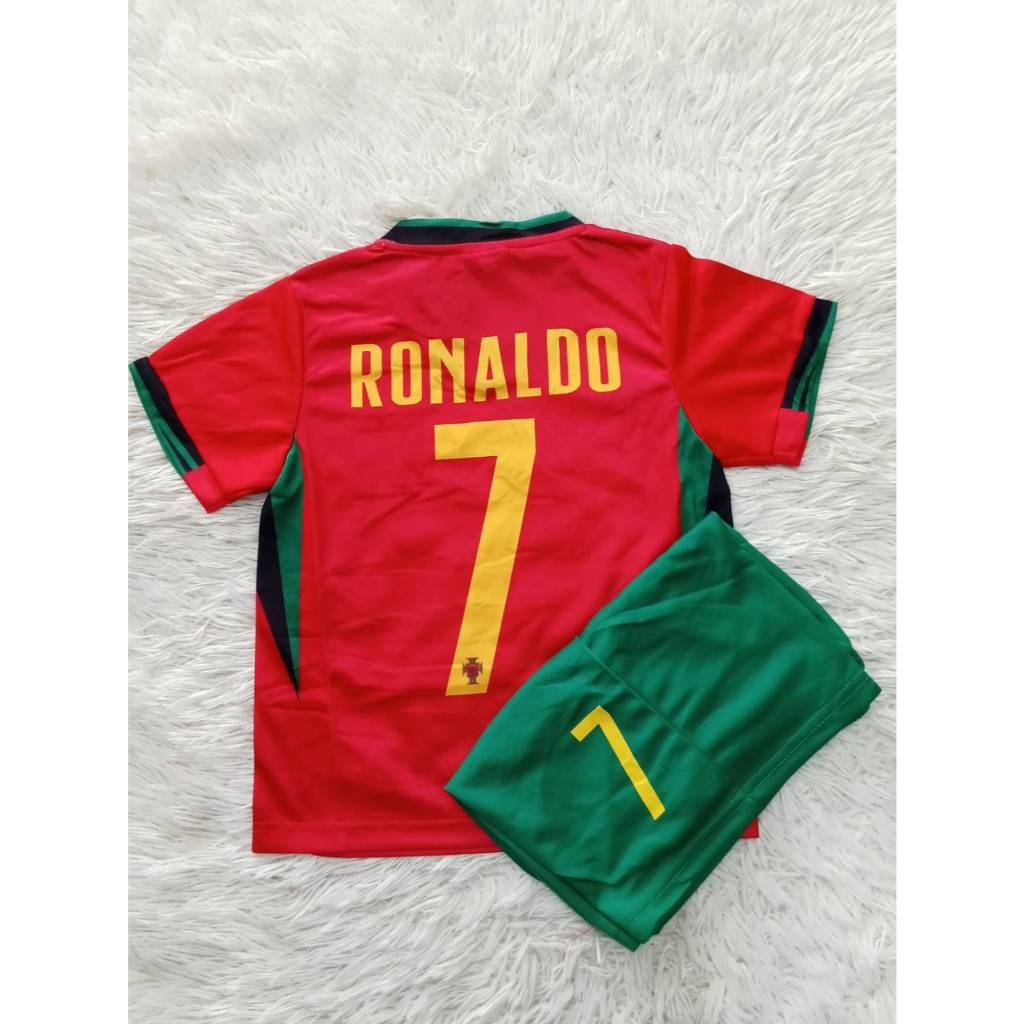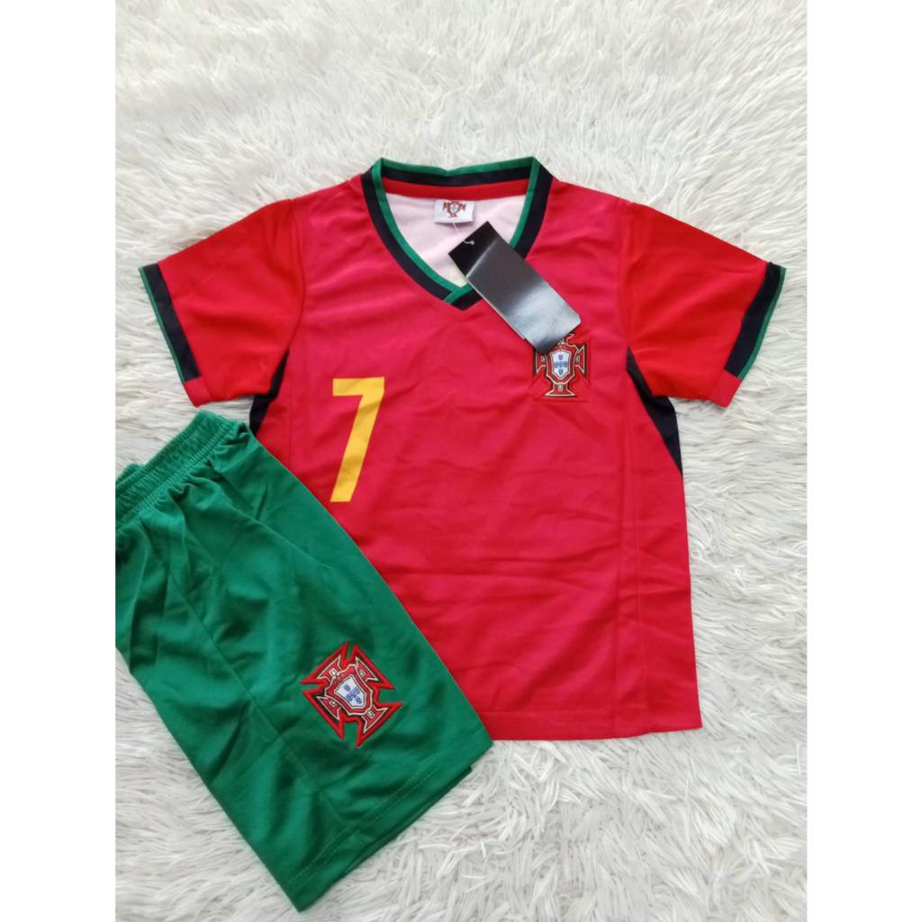 เสื้อฟุตบอลเด็ก ทีมชาติโปรตุเกสNO7ชื่อโรนัลโด้ ปี2025ใหม่ล่าสุด เสื้อ+กางเกง