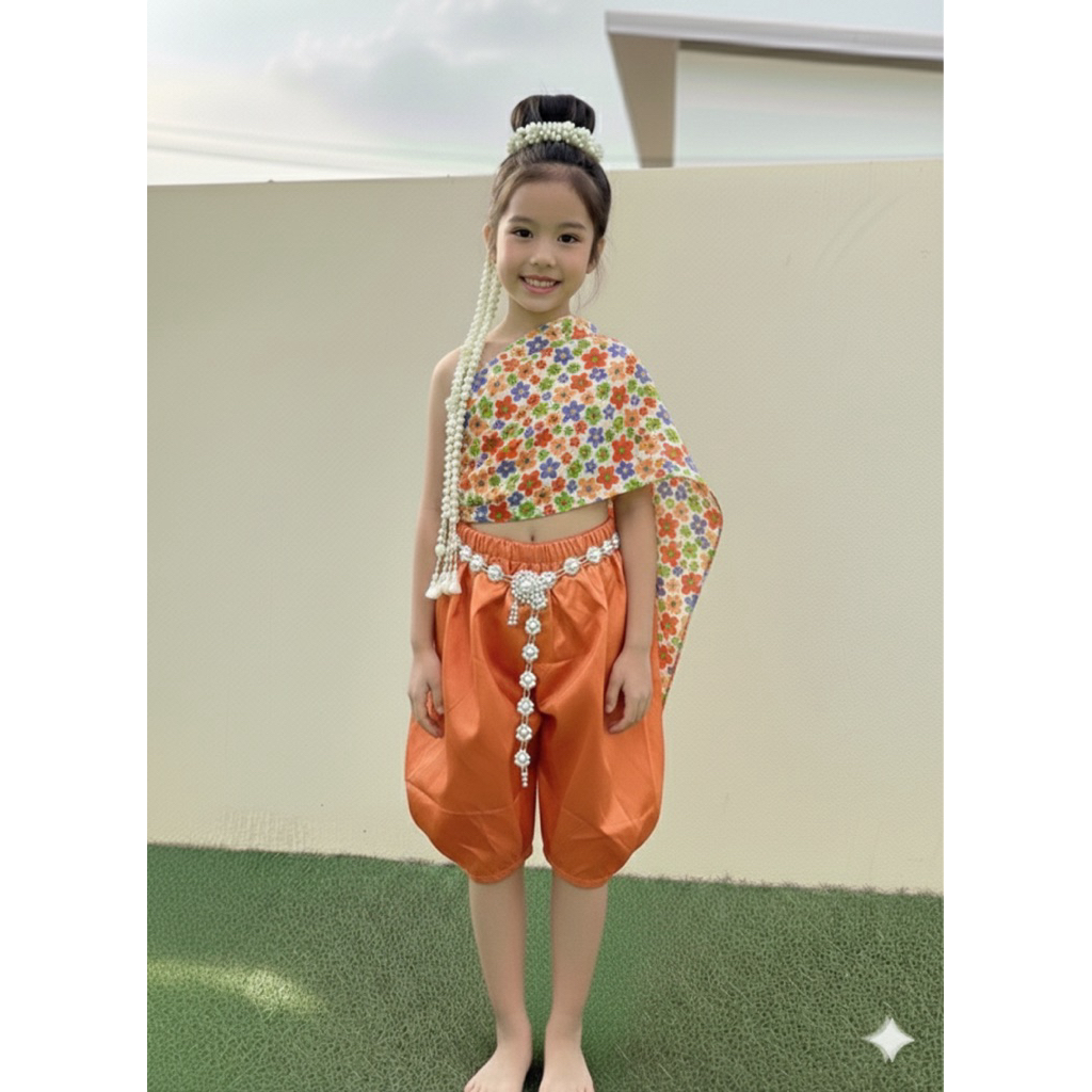 สไบลายดอกเด็ก ด้านในเป็นเกาะอก สวมใส่ง่าย FVT108 (ลาย4)
