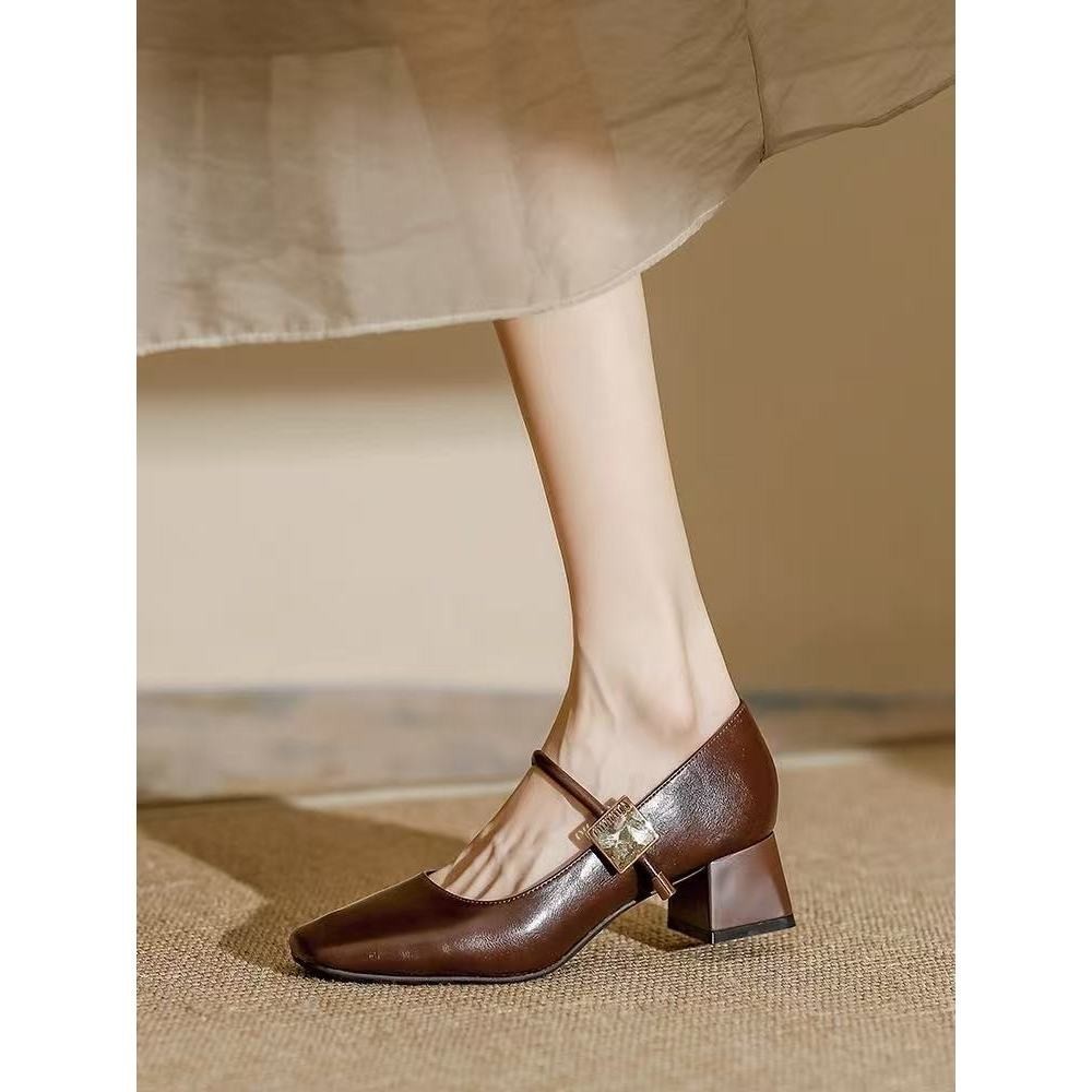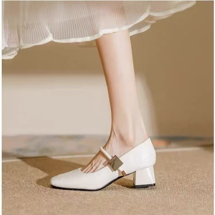 [LS] รองเท้าลําลองผู้หญิง Mary Jane สไตล์เกาหลี ส้นเตารีด สีขาว สำหรับใส่ไปเรียน ทำงาน รับปริญญา 2 นิ้ว