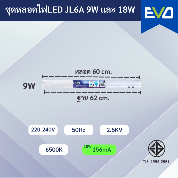 ชุดหลอดไฟ LED ครบชุด(ฟลูเซ็ท) EVO JL6A ขนาด 9 วัตต์ และ 18 วัตต์