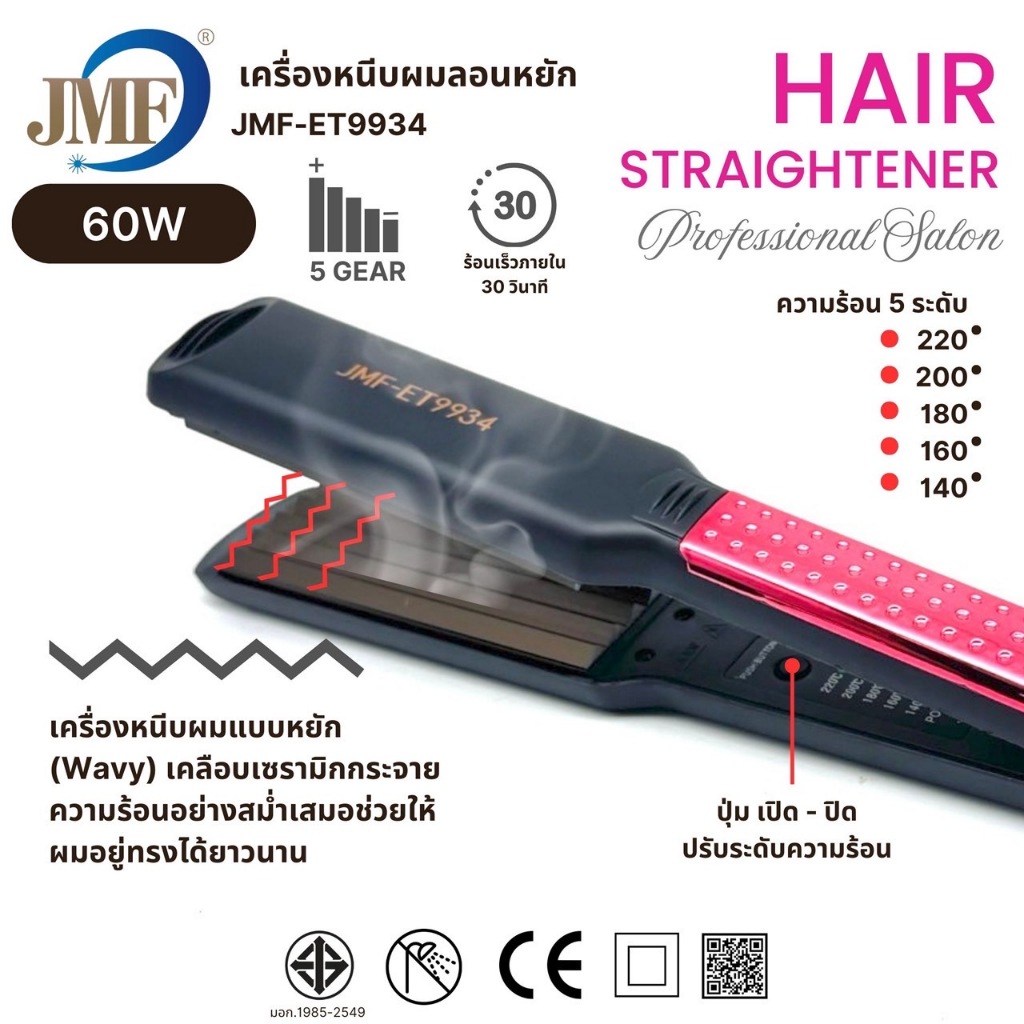 JMF ET9934ของแท้100% เครื่องหนีบผม ที่หนีบผม หน้ากว้าง เครื่องรีดผม เครื่องม้วนผม ร้อนเร็ว