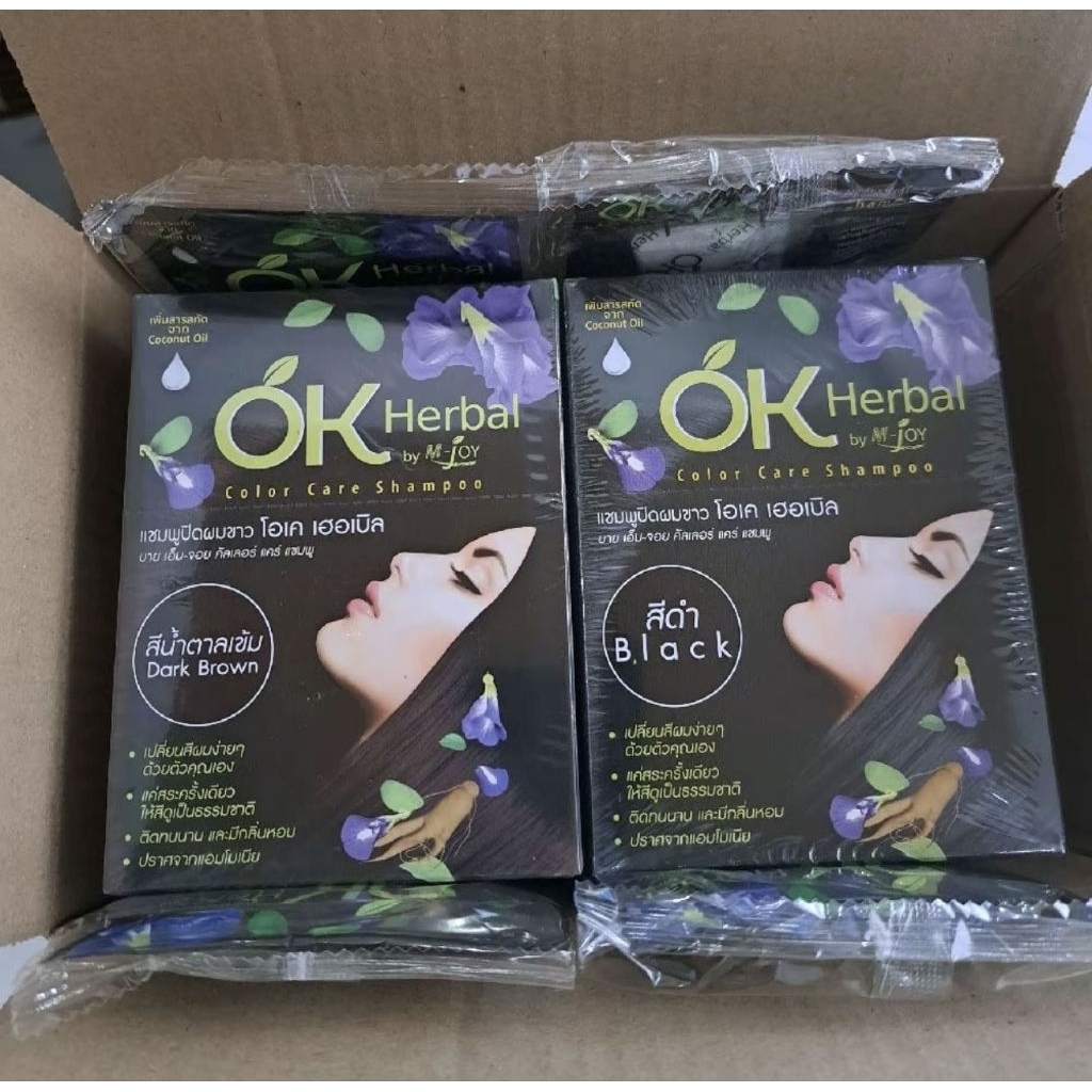 แชมพูปิดผมขาว OK herbal 1 กล่อง 12 ซอง ของแท้
