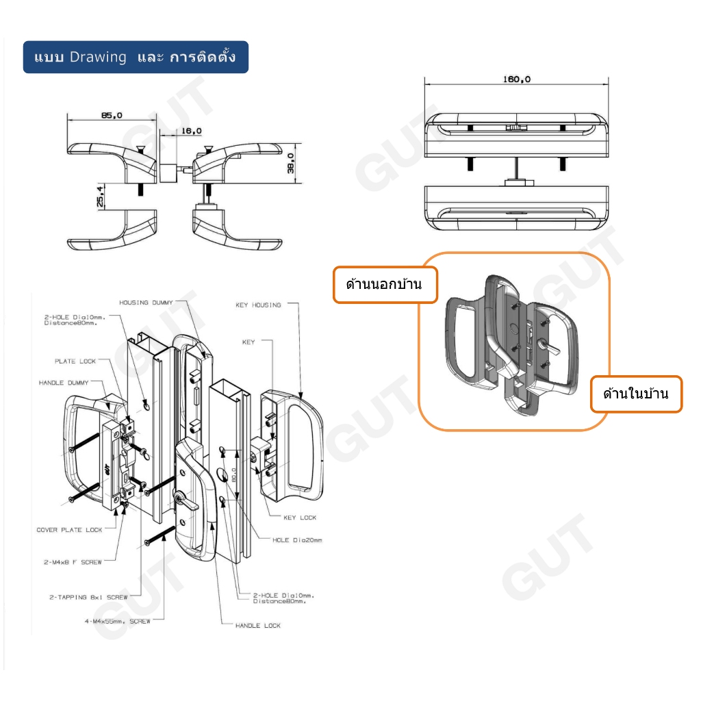 [ พร้อมส่ง ] GUT มือจับล็อคประตูบานเลื่อนคู่ ระบบ Single Lock แบบมีกุญแจ 🔒 (มือจับ D 4 ด้าน ในบ้าน 2 : นอกบ้าน 2)