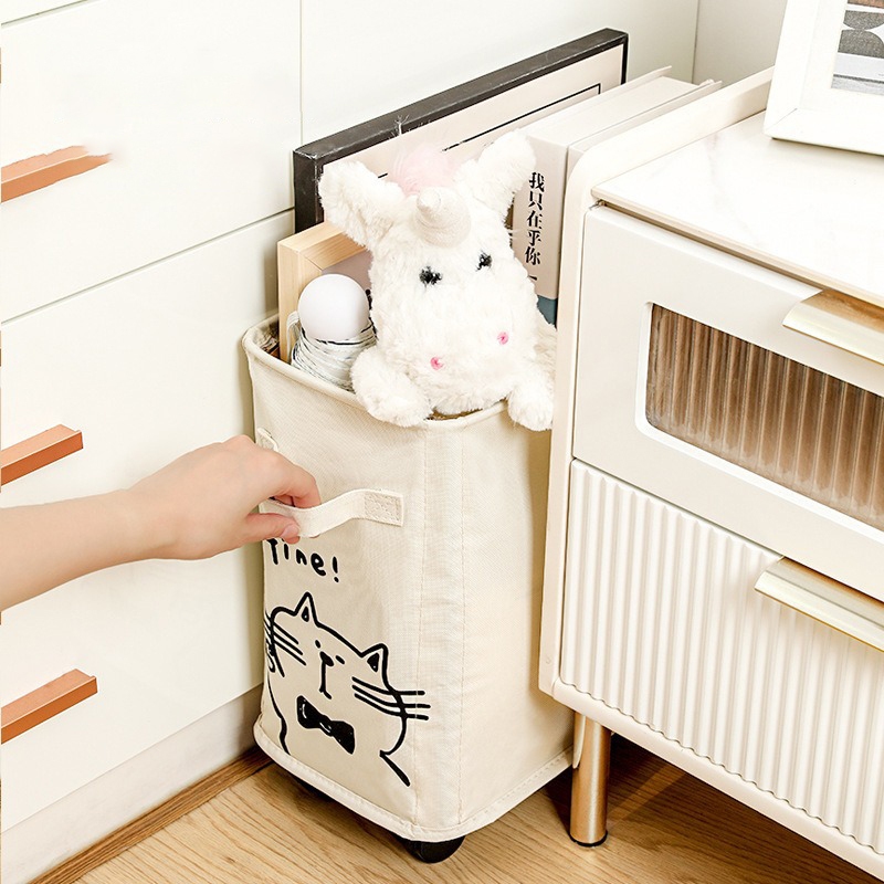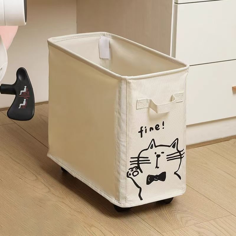 Greenforst ตะกร้าเก็บของผ้าลายแมวน่ารัก กล่องเก็บของผ้ามินิมอล พร้อมล้อเลื่อน มีล้อ 360° พร้อมหูจับ รุ่น 5304