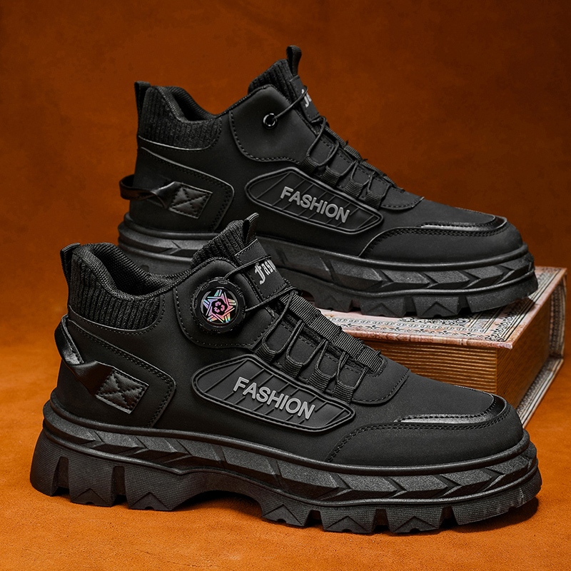 รองเท้าผู้ชาย กันน้ำและกันลื่น การดูดซับแรงกระแทกแบบก้นหนา รองเท้าบูทมาร์ตินแบบลำลองอเนกประสงค์