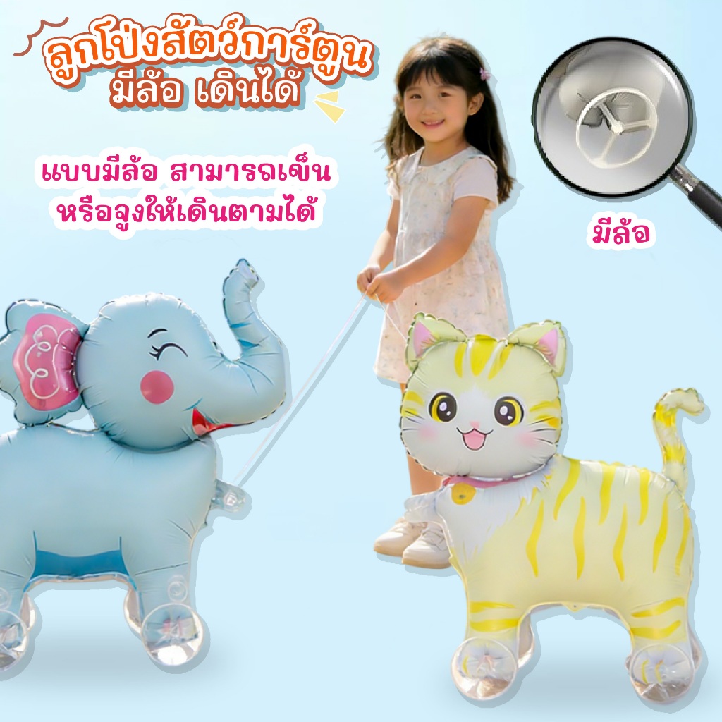 ลูกโป่งมีล้อสัตว์ Animal Balloon ปาร์ตี้ธีมสวนสัตว์ บอลลูนเดินได้ ตกแต่งวันเกิดเด็ก