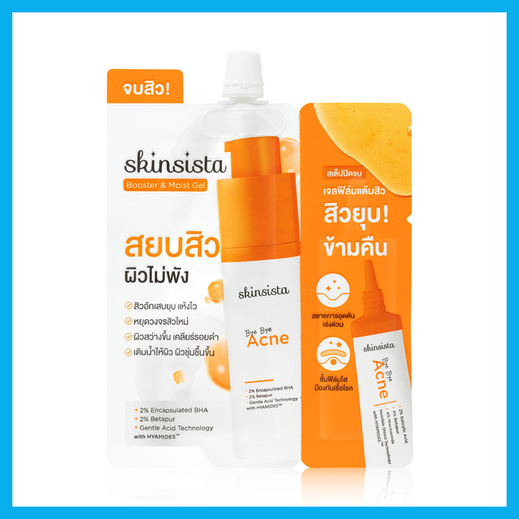 Skinsista Bye Bye Acne Booster & Moist Gel And Bye Bye Acne Gel 8.5g ครีมซองสกินซิสต้า ช่วยลดสิว เผยผิวเนียนใส.
