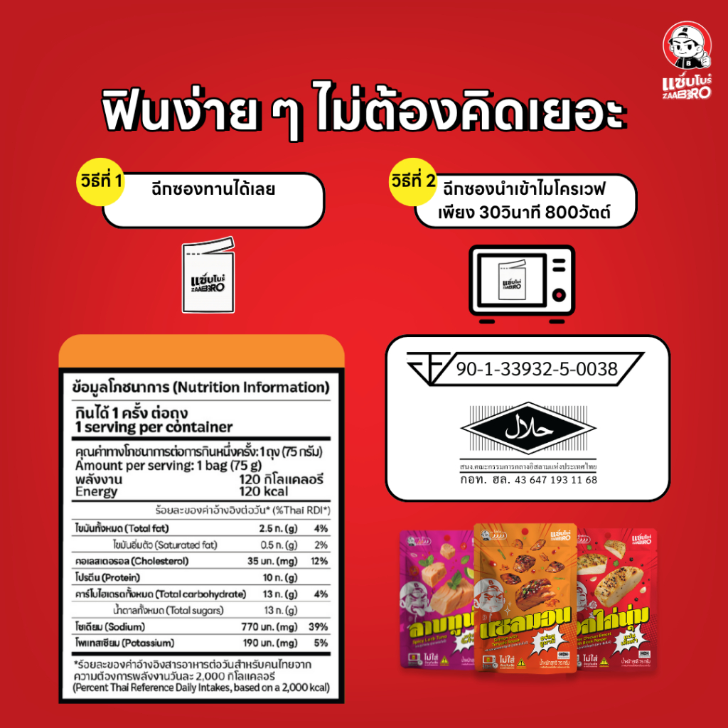 ZAABRO แซ่บโบร๋ แซลมอนซอสเทอริยากิพร้อมทาน อร่อยคุ้ม จัดจ้าน เนื้อแน่นเต็มซอง 75 กรัม