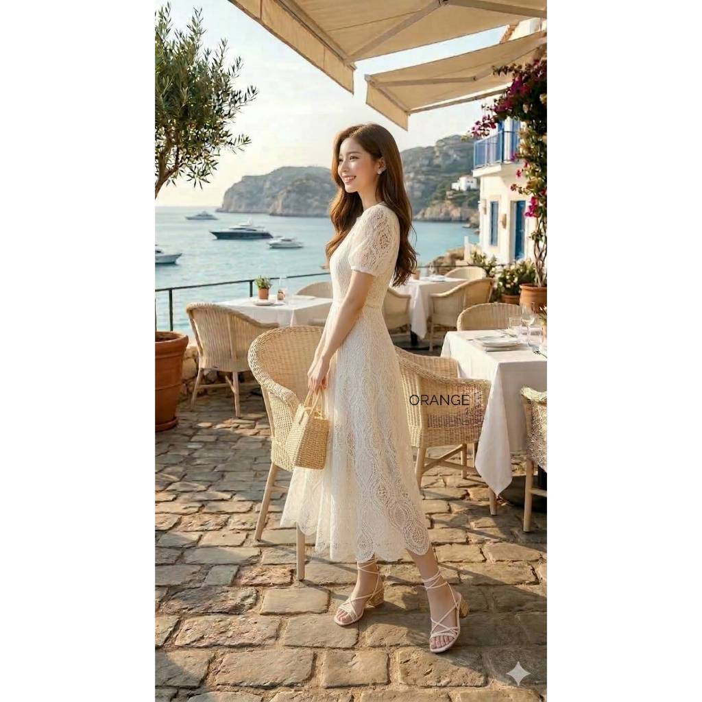 ‼️✨มีบริการส่งด่วนนะคะ✅NADA159 ชุดเดรสลูกไม้สีขาว ชุดเดรสทำบุญ งานป้าย Orange Juice