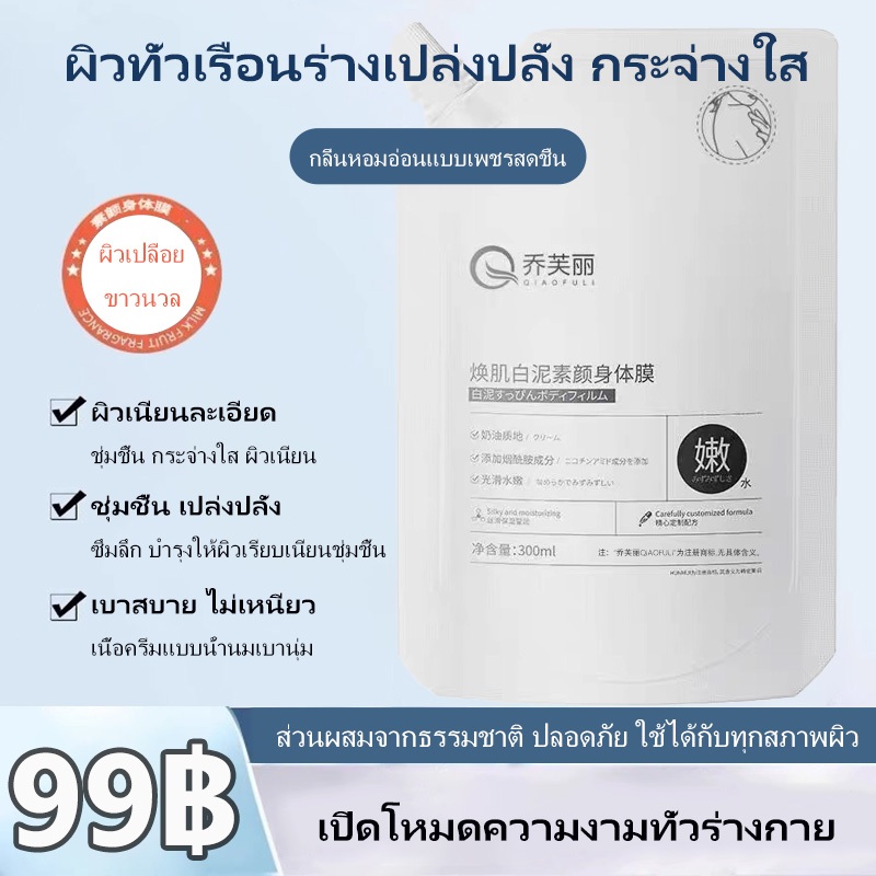 ครีมมาส์กผิวกายเนื้อโคลนขาวผสมไนอะซินาไมด์ ช่วยเติมน้ำ บำรุงผิว ปรับสีผิวให้กระจ่างใส สดชื่น ไม่เหนียวเหนอะหนะ ใช้ได้ทั้