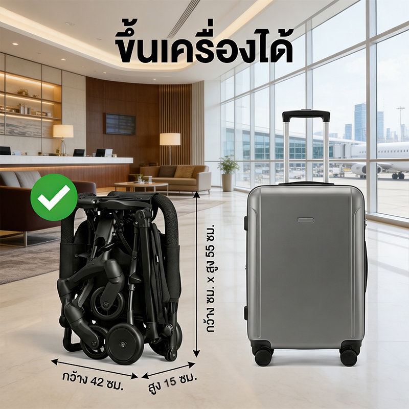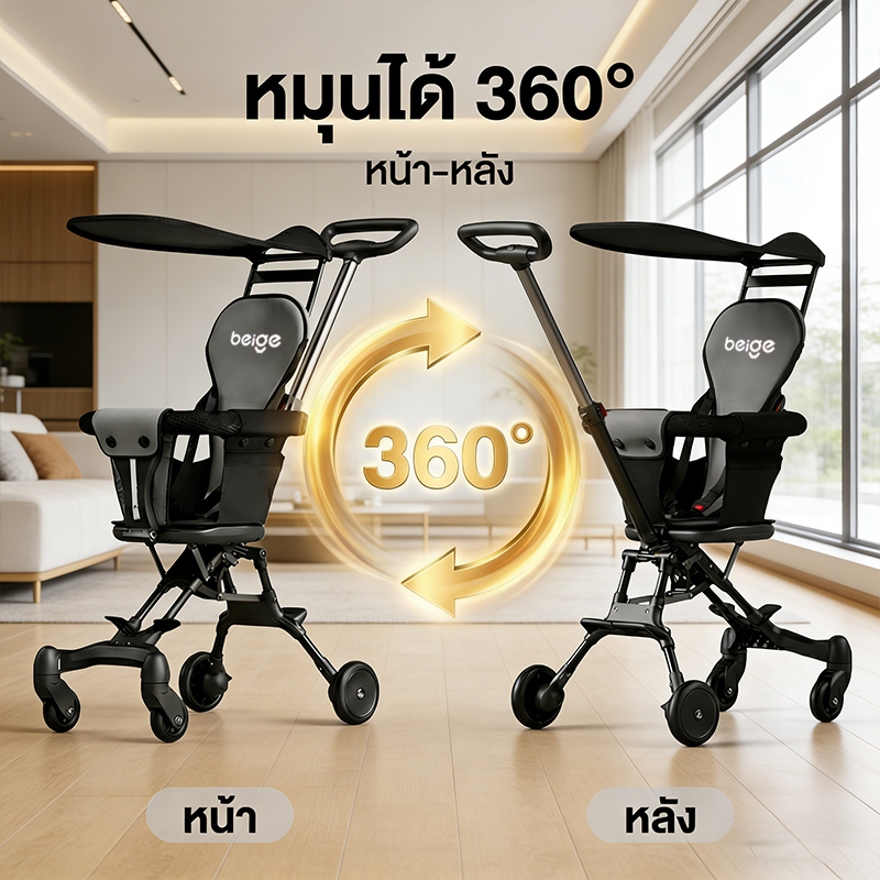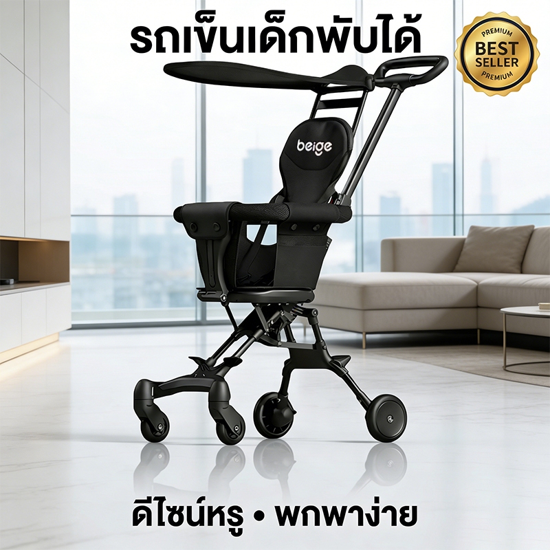 Beige รถเข็นเด็ก พับได้ เข็นได้สองทาง เบาะเอนนอน น้ำหนักเบา พกพาสะดวก เหมาะสำหรับเด็กแรกเกิดถึง3ปี