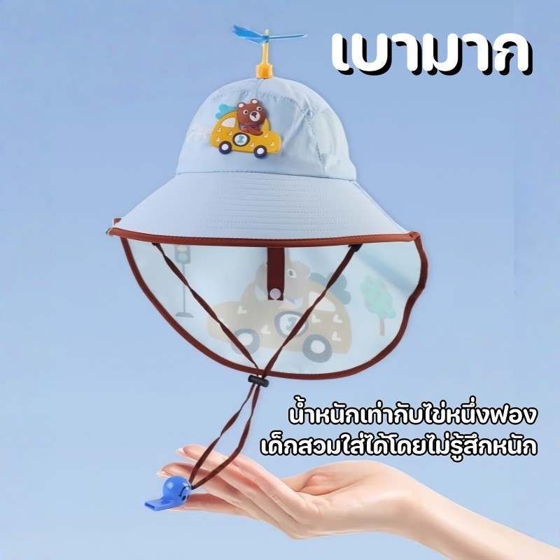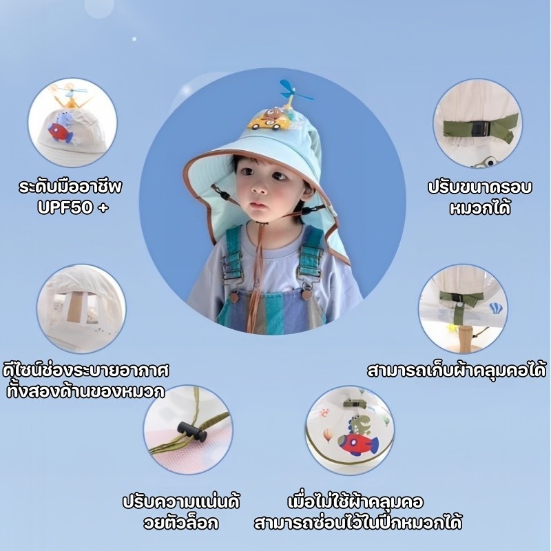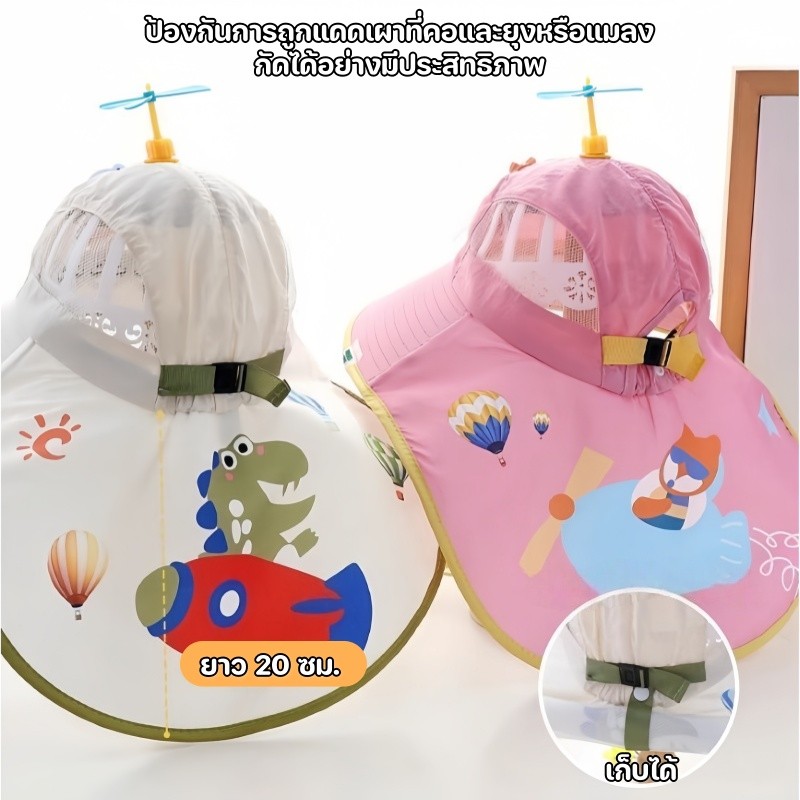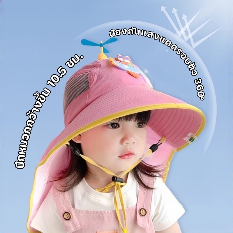 หมวกกันแดดเด็ก ป้องกันUV ปีกหมวกกว้าง มีผ้าคลุมไหล่ บางเบา ระบายอากาศ ปรับขนาดได้ หมวกเด็ก