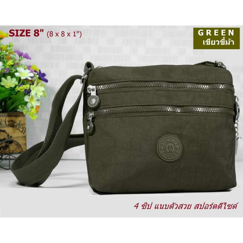 LK กระเป๋าสะพาย ผ้าร่มกันน้ำ สไตล์คิปลิงค์ สวยเท่ 4 ช่องซิป (ไซด์กลาง 8 นิ้ว) รุ่น LK8628