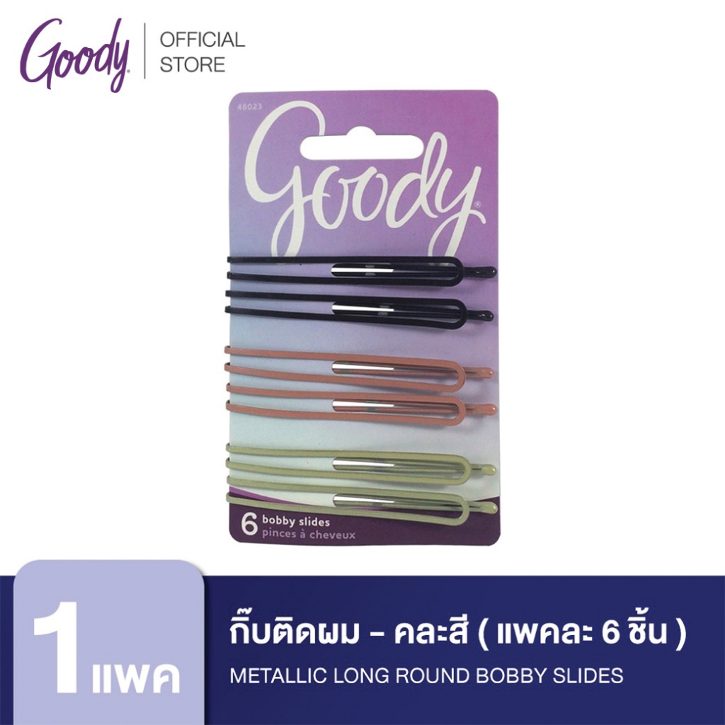 Goody กิ๊บติดผม 46023 Metallic Long Round Bobby Slides - คละสี (6 ชิ้น)
