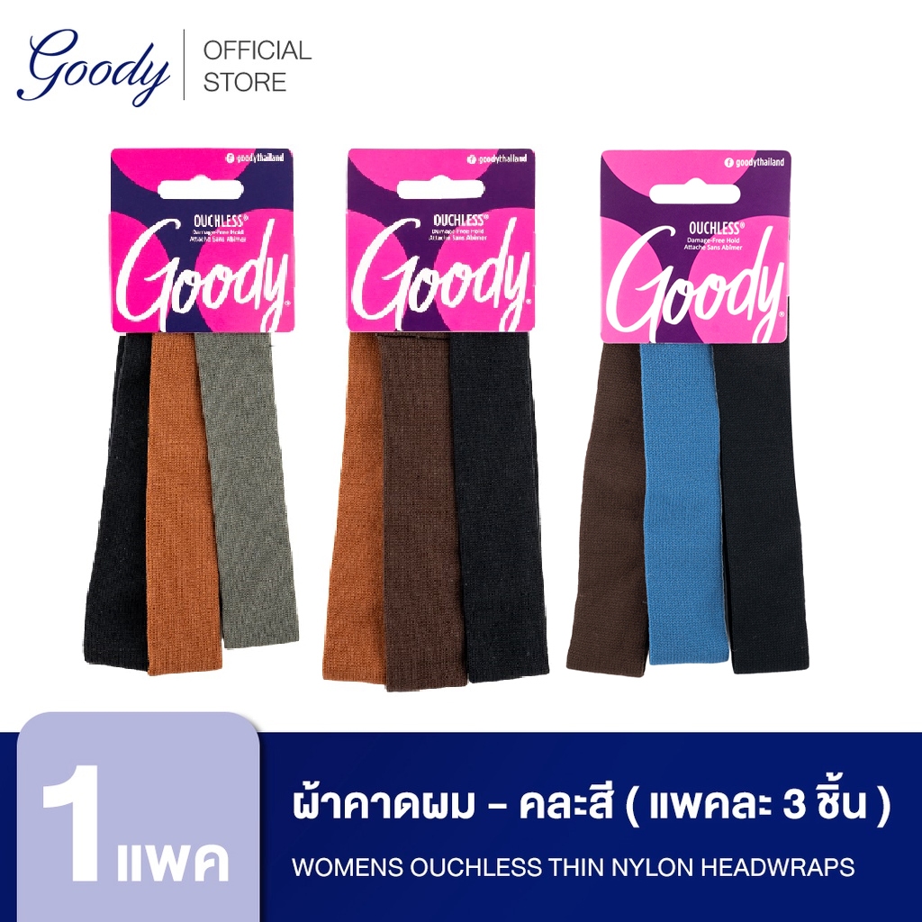 Goody ผ้าคาดผม 05529 Womens Ouchless Thin Nylon Headwraps - คละสี (3 ชิ้น)