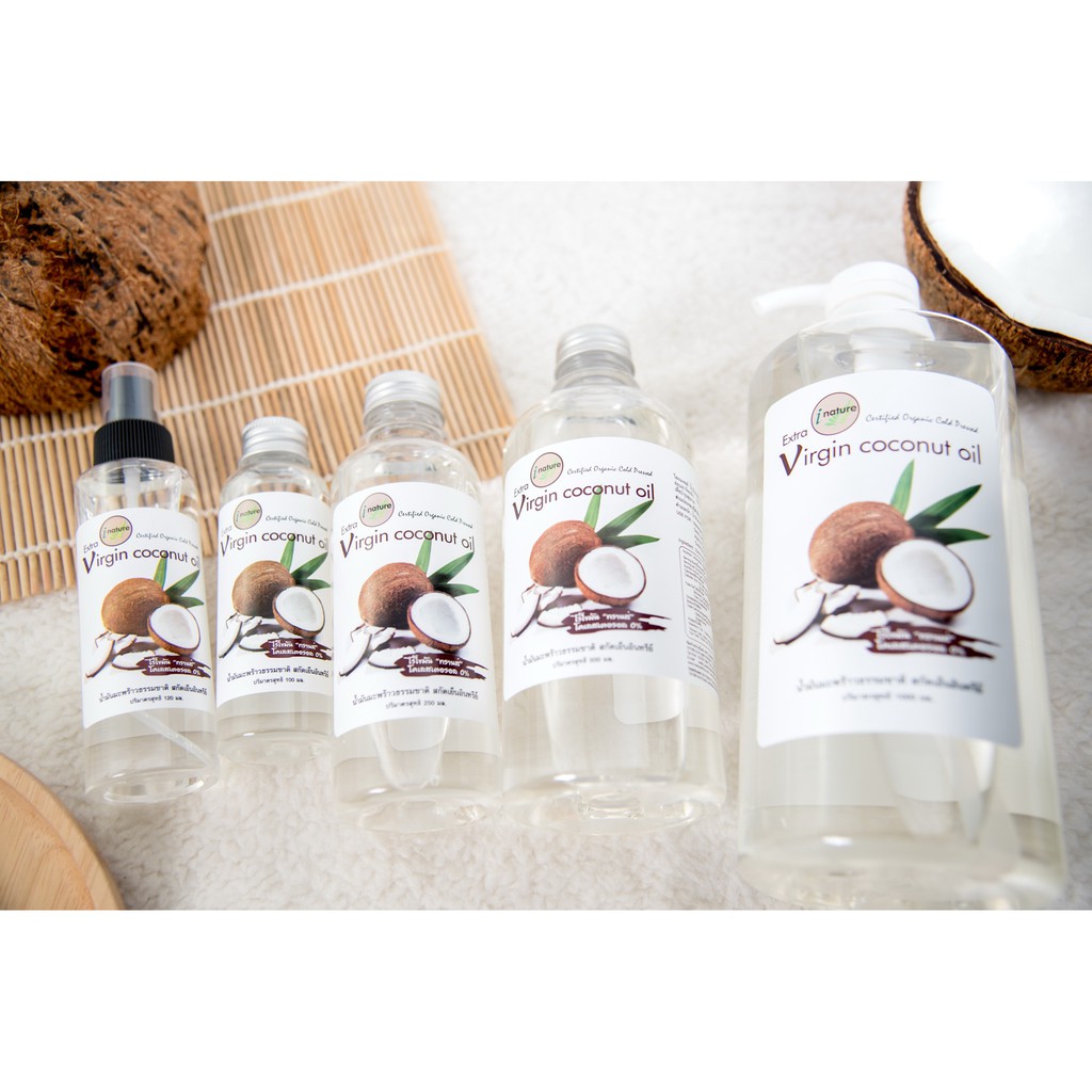 I nature extra virgin coconut oil ไอ-เนเจอร์ ไอ เนเจอร์ น้ำมันมะพร้าวบริสุทธิ์สกัดเย็น 100% 100 / 120 / 250 / 500 ml