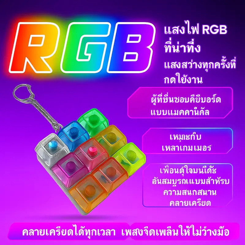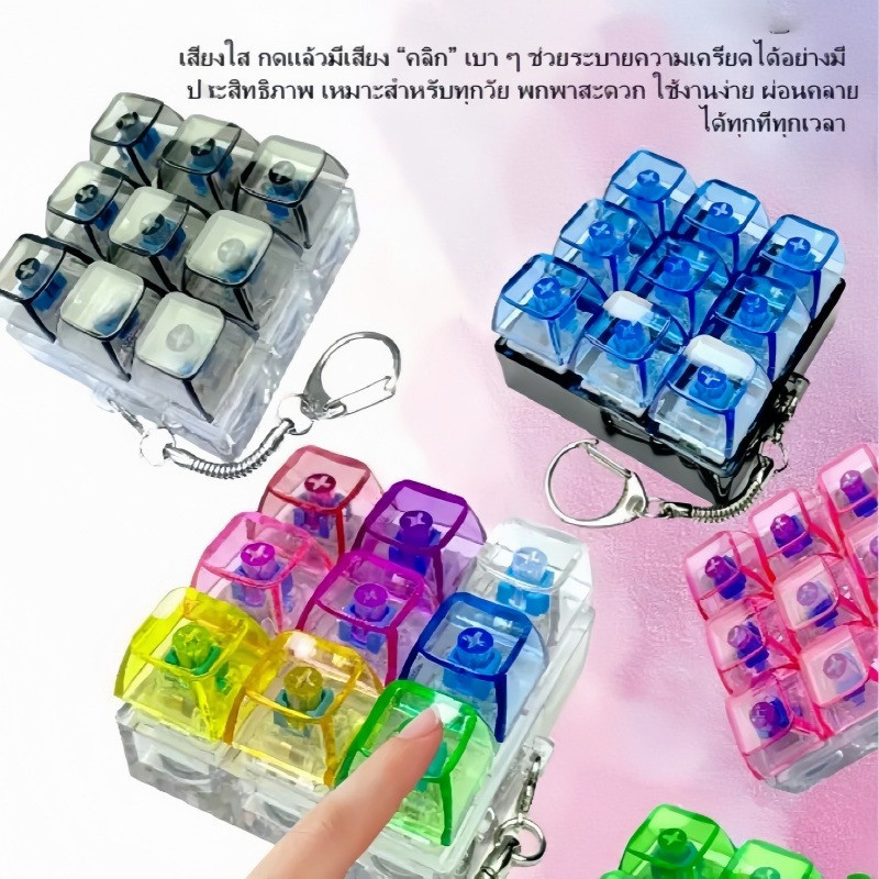 คีย์บอร์ด 9 ปุ่มคลิกของเล่น พวงกุญแจปล่อยของเล่นความเครียด เพิ่มสมาธิ ขนาดกะทัดรัด ของเล่นพวงกุญแจ ของเล่นเรืองแสงหลายสี