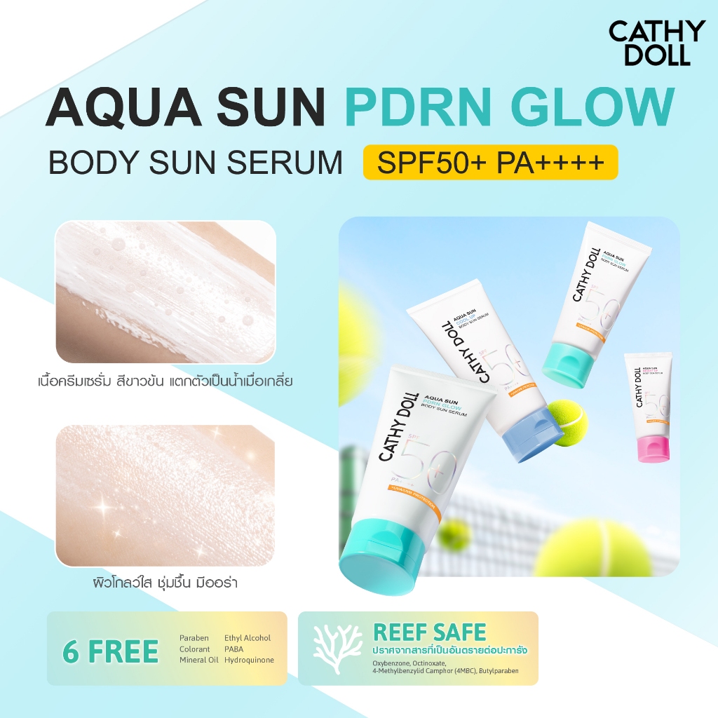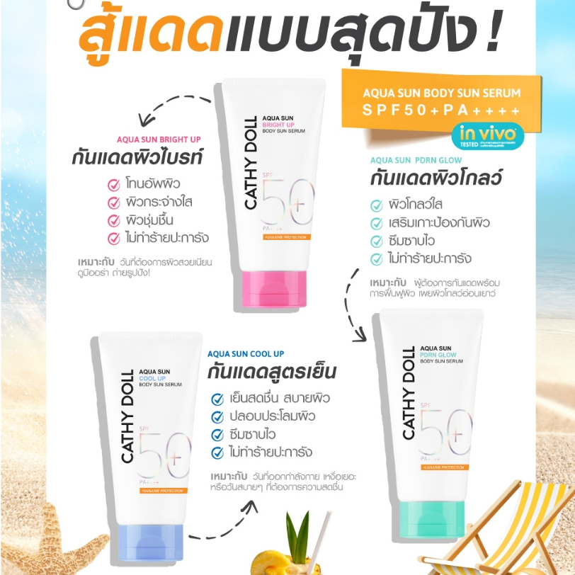 Cathy Doll อควาซันโกลว์บอดี้ซันเซรั่ม เอสพีเอฟ50+ พีเอ++++ 140ml เคที่ดอลล์ มี 3 สูตร