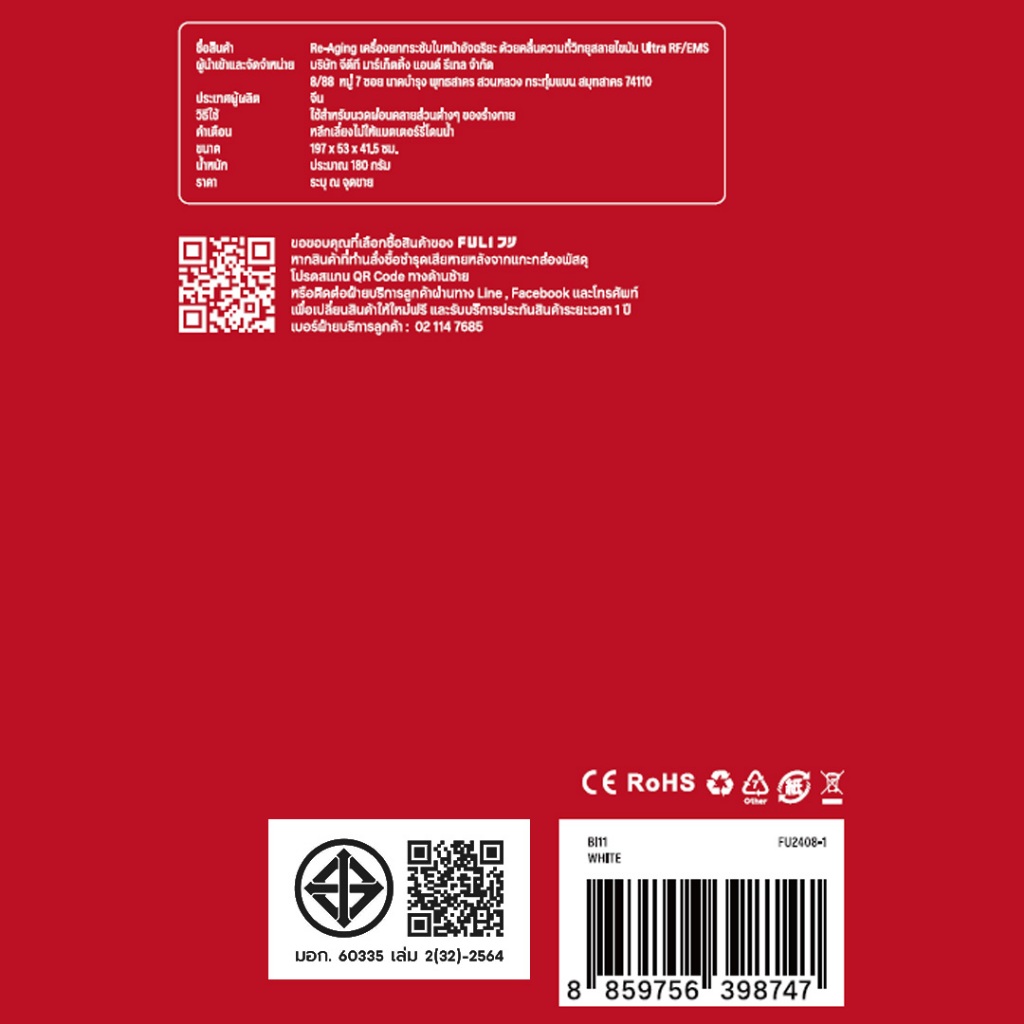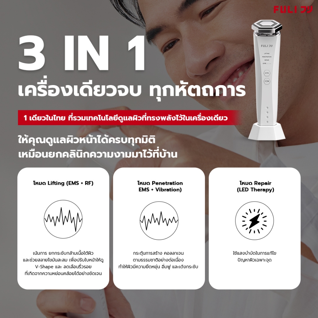 FULI Re-Aging เครื่องยกกระชับใบหน้าอัจฉริยะ ด้วยคลื่นความถี่วิทยุสลายไขมัน Ultra RF/EMS | Re-Aging Intelligent Ultra RF/EMS Skin Tightening Device