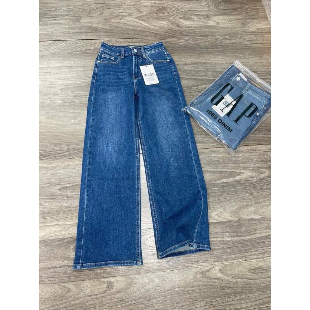 Gap กางเกงยีนส์ผ้ายืด เอวสูง ทรงขากว้างเป้า 11 นิ้ว