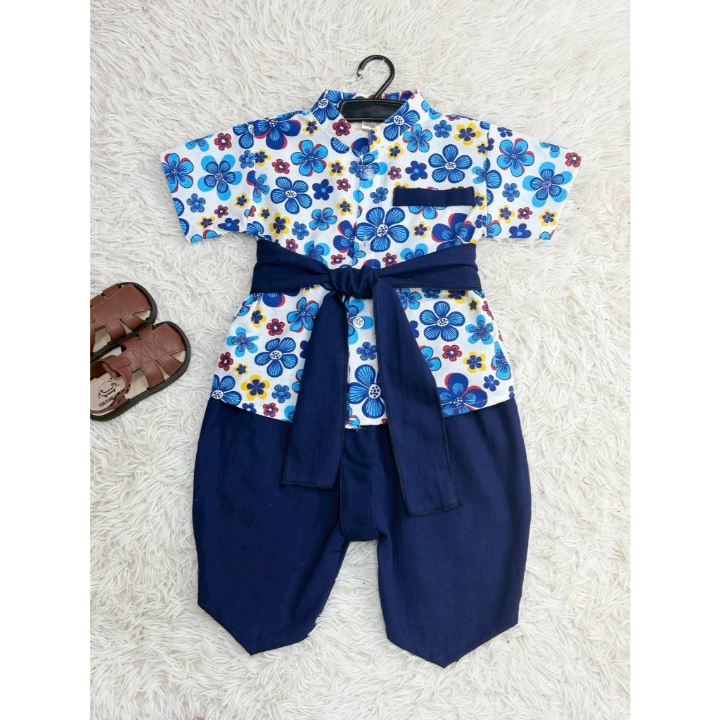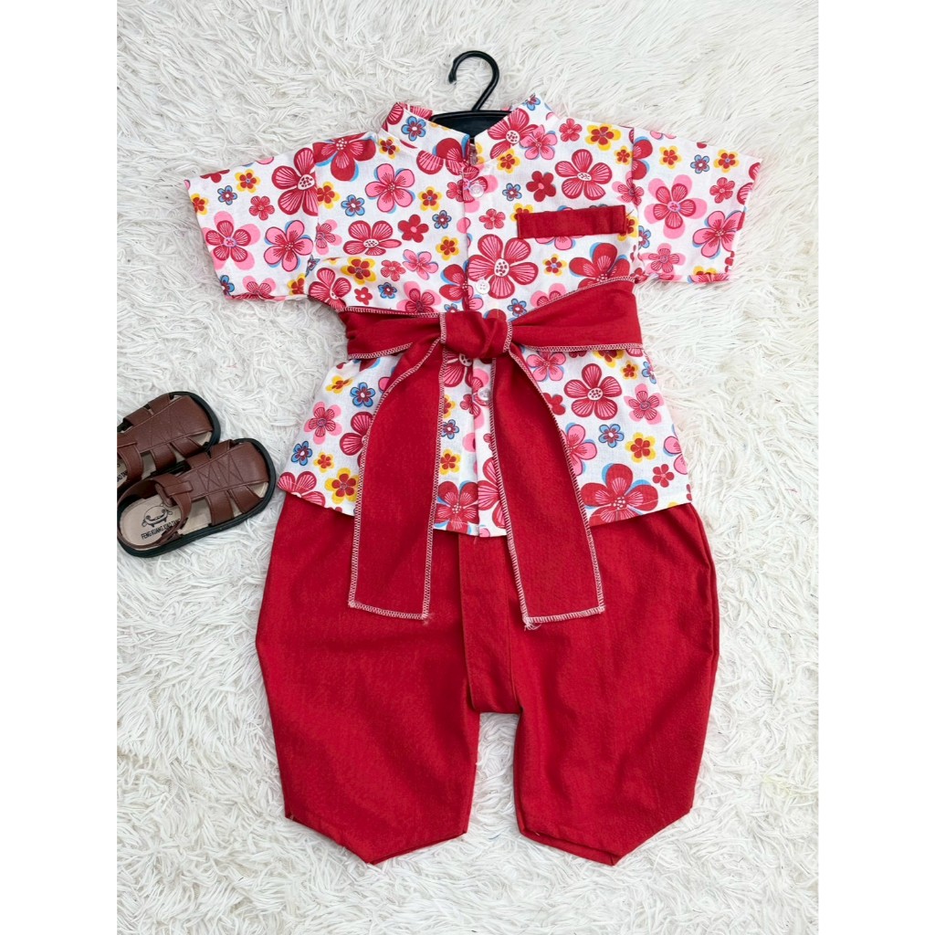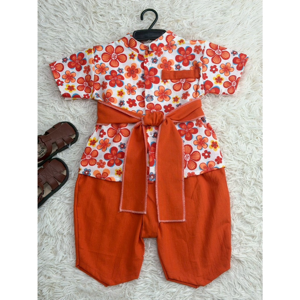 ชุดไทยโจงกระเบน ชุดไทยเด็กชาย ชุดลายดอก สงกรานต์ เซท3ชิ้น