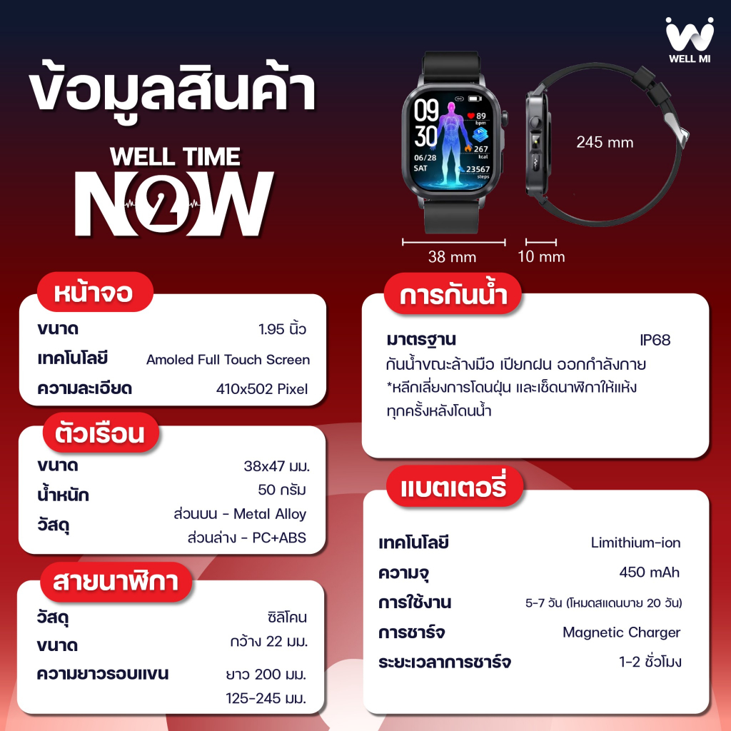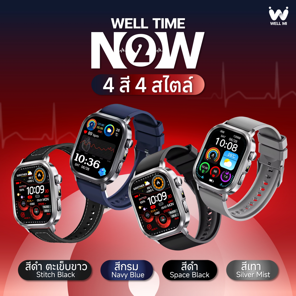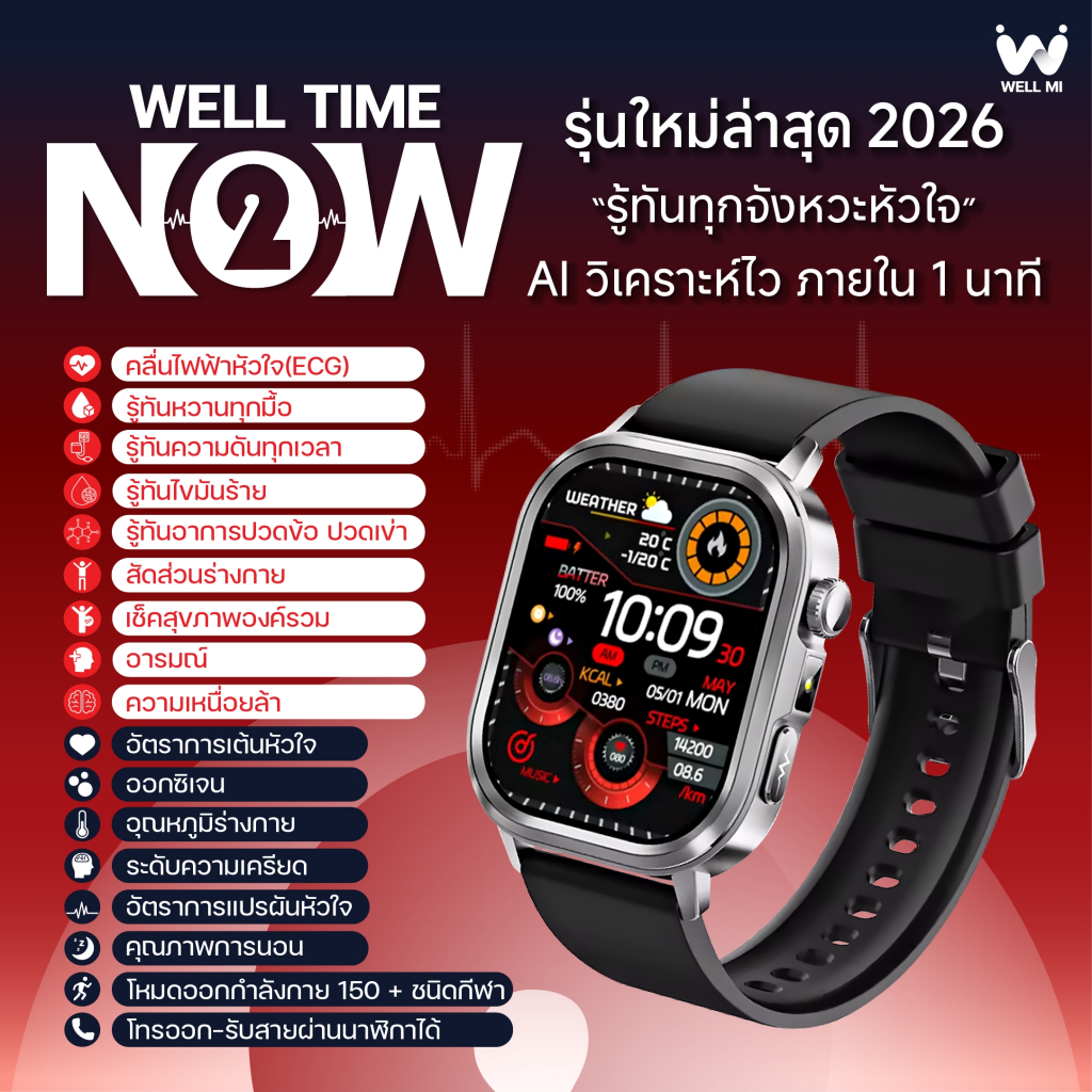 [ใหม่ล่าสุด2026] Well Time Now2 AI Smartwatch นาฬิกาสุขภาพกว่า 17 โหมด ความดัน ECG รับสายโทรออก