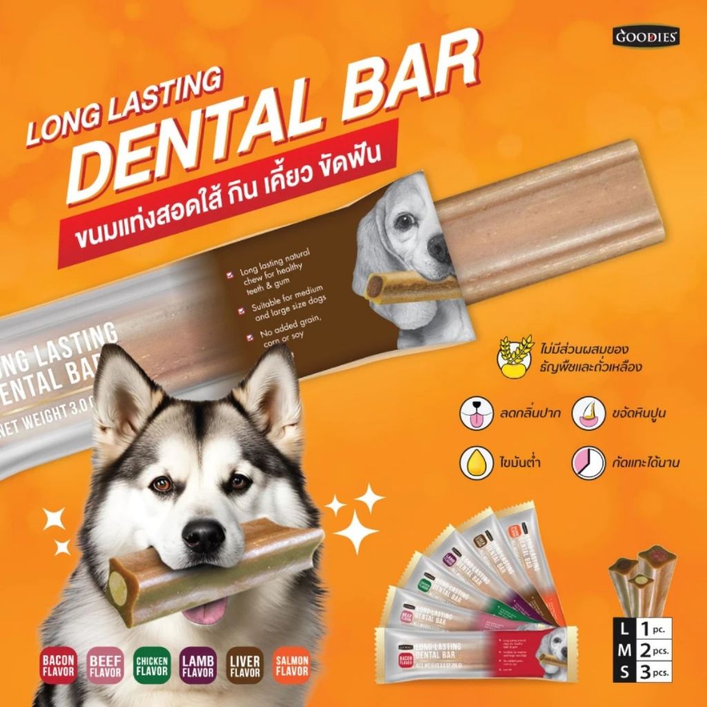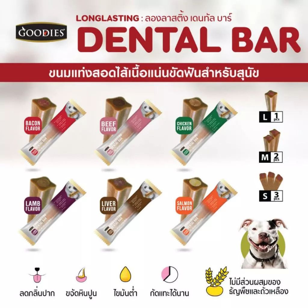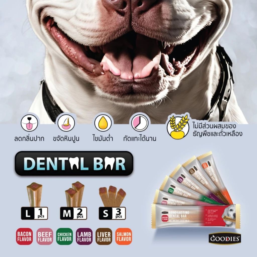 Goodies เดนทอลบาร์ ขนมขัดฟันสุนัข ลดกลิ่นปาก ขจัดคราบหินปูน เลือกรส เลือกขนาดได้ 85กรัม