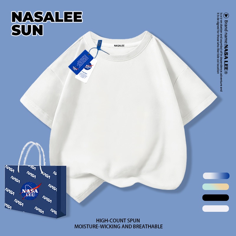 【จัดส่งทันทีวันเดียวกัน】เสื้อยืดแขนสั้น NASA สำหรับเด็ก สีขาวเรียบล้วน (ไม่มีลายพิมพ์) ทำจากผ้าฝ้าย 100% เหมาะสำหรับเด็กอายุ 3-16 ปี (ทั้งชายและหญิง)