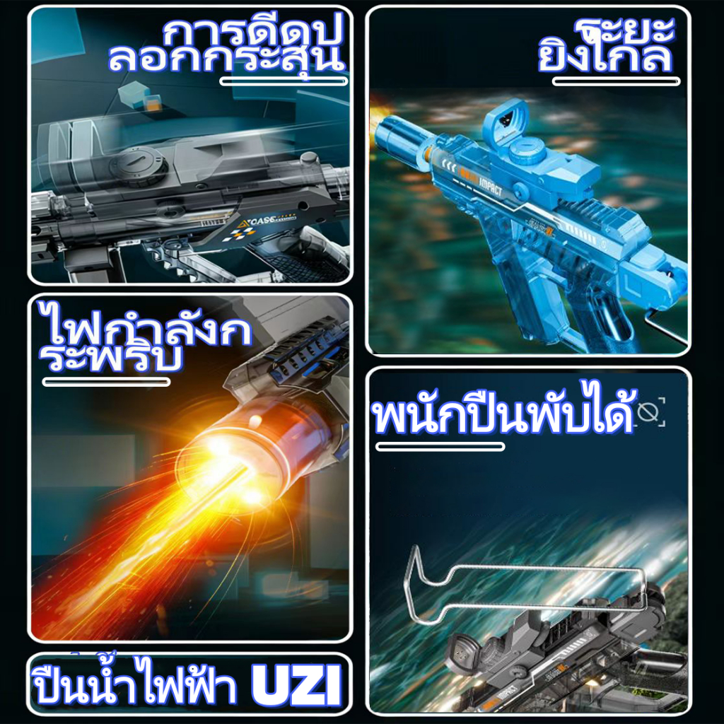 COD ส่งตรงจากไทย ปืนฉีดน้ำ UZI สงกรานต์ ไฟLED ถังน้ำขนาดใหญ่ แบตเตอรี่ชาร์จได้ ของเล่นเด็ก