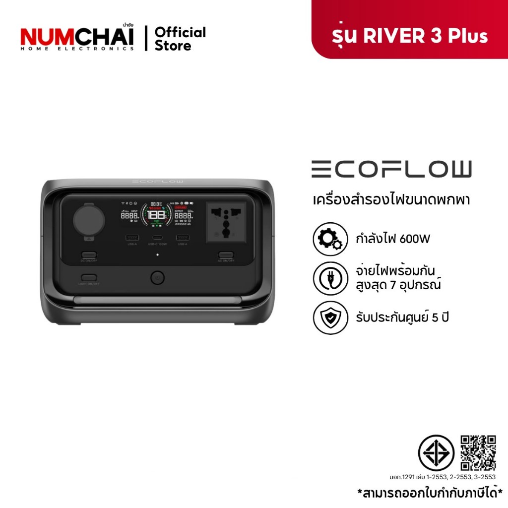Ecoflow River 3 Plus Portable Power Station เครื่องสำรองไฟฟ้า พกพา อเนกประสงค์ 600 วัตต์ รับประกัน 5 ปี