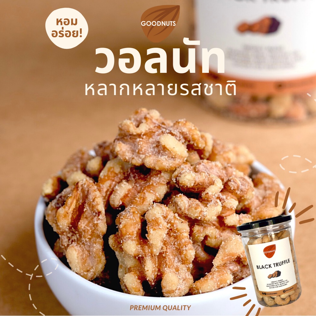 กู้ดนัทส์ วอลนัทอบ เกรดพรีเมียม คัดเม็ดเต็ม ขมน้อย นำเข้าจากUSA 240กรัม หลากรสชาติ | Goodnutsbkk