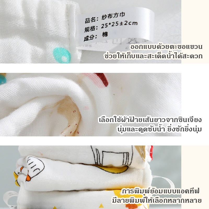 ผ้าเช็ดหน้าเด็ก 5 ผืน ผ้าเช็ดหน้าสาลู แบบหนา 25*25ซม. ลายน่ารัก ผ้านุ่ม ซับน้ำดี ไม่ระคายเคืองผิว