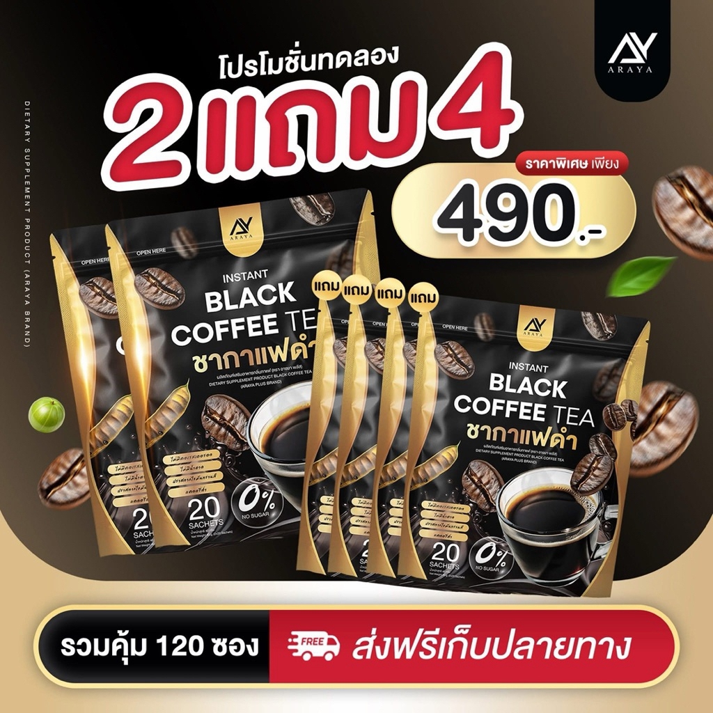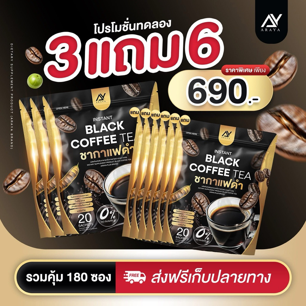 ðĨAraya [āđāļāđāļĨāļāđāļĨāļ100] āļāļēāļĢāļĒāļēāļāļēāļāļēāđāļāļāļģ BLACK COFFEE TEA āļāļĢāļē āļāļēāļĢāļĒāļē 1 āļŦāđāļāļĄāļĩ 20 āļāļāļ āļāļĢāđāļāļĄāļŠāđāļ