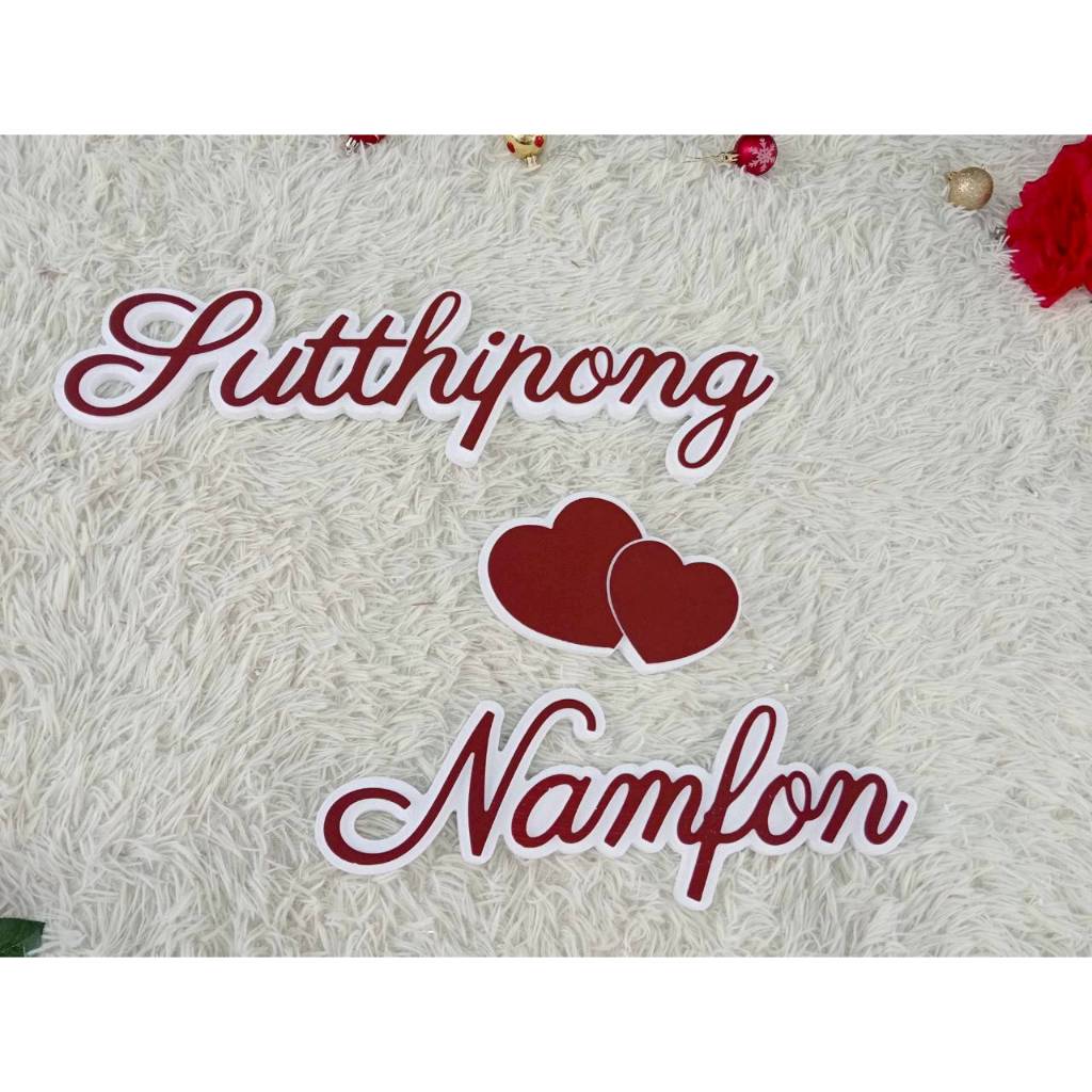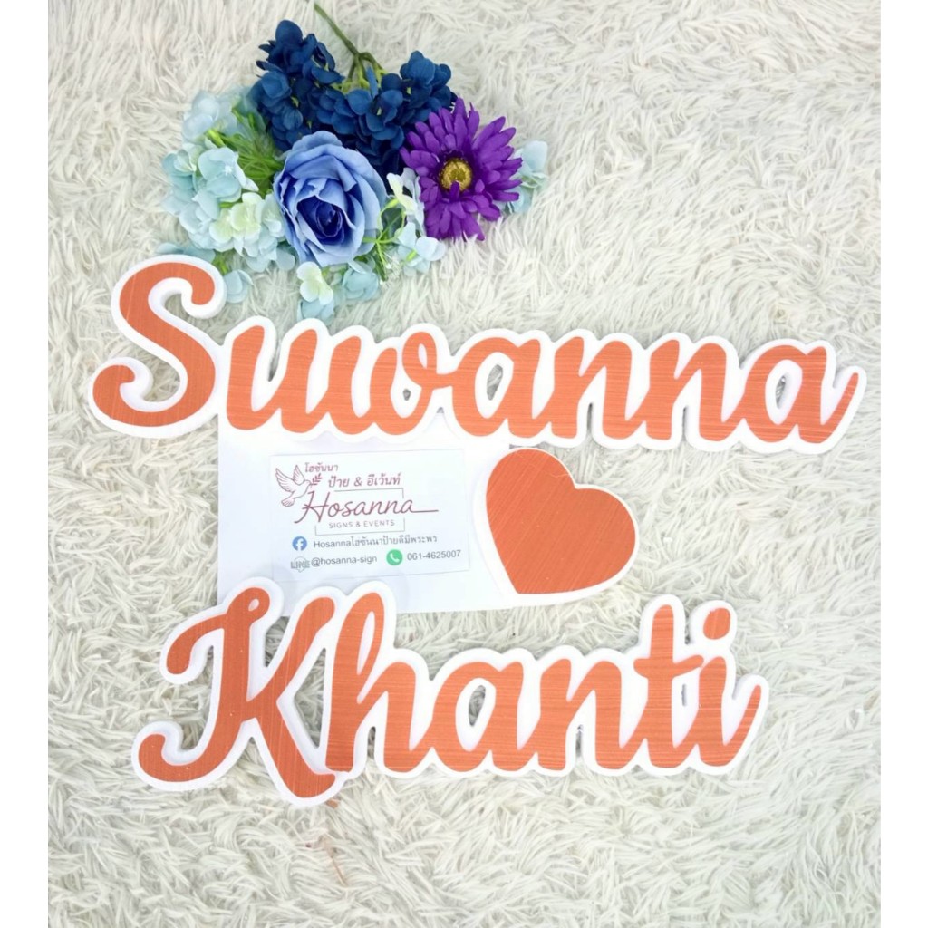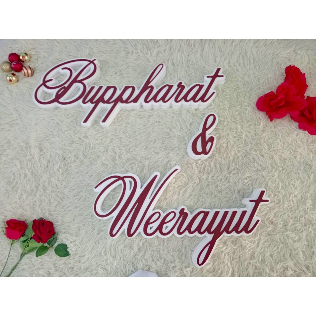 ป้ายงานแต่งชื่อบ่าวสาว [ส่งไว]ติดแบคดรอปป้ายโฟมเกรด3Aอักษรนูนหนา13มิลมีมิติสำหรับติดแบคดรอป2-3.6เมตร